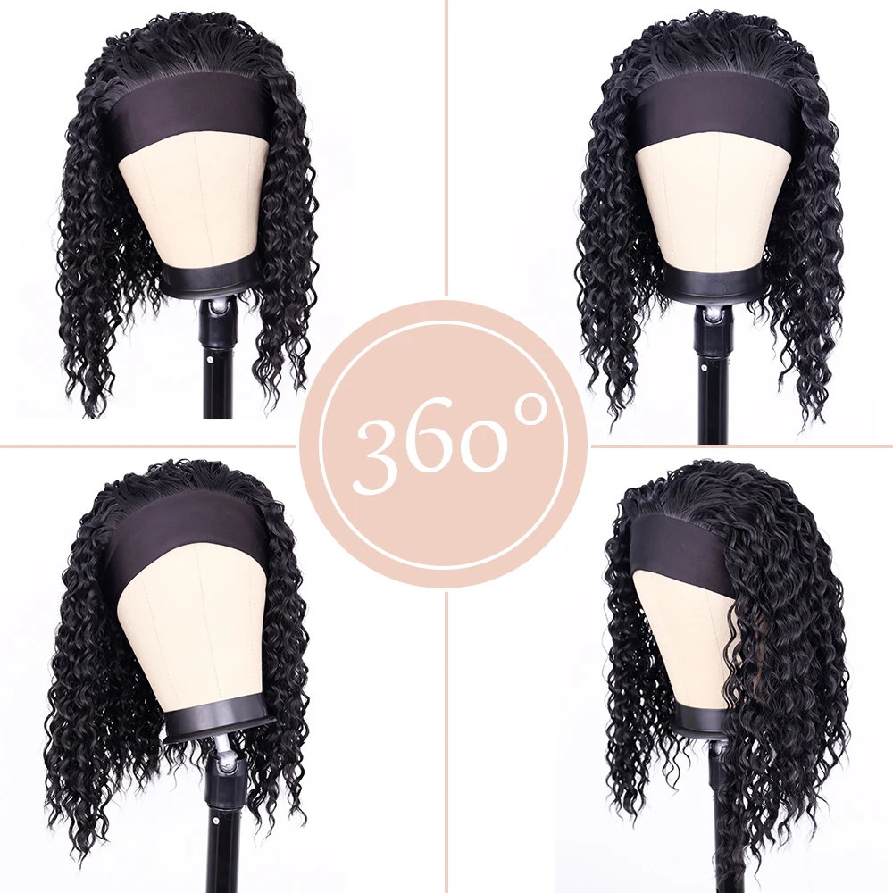 Синтетические парики с глубокой волной и головной повязкой, Короткие вьющиеся головные уборы, для чернокожих женщин, кудрявые головные уборы для косплея