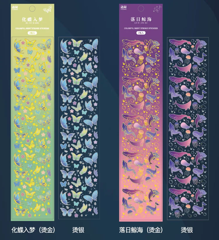 Лазерные наклейки в стиле Ins с бронзовыми бабочками и китами, 8 видов, 2 листа