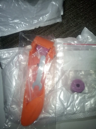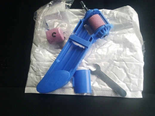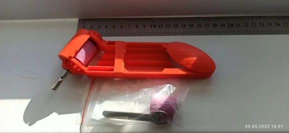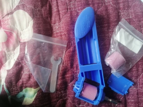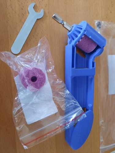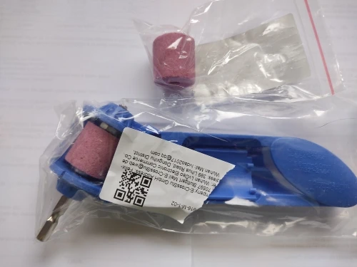 Пришло всё в соответствии с заказом. Кроме показанных в описании заказа приспособления в сборе, крышки, ключа для закрепления камня, запасного камня и крышки, есть ещё 2 разрезные шайбы. ВНИМАНИЕ: камень был плохо закреплëн. Перед использованием подтяните крепление камня. Всем удачи!