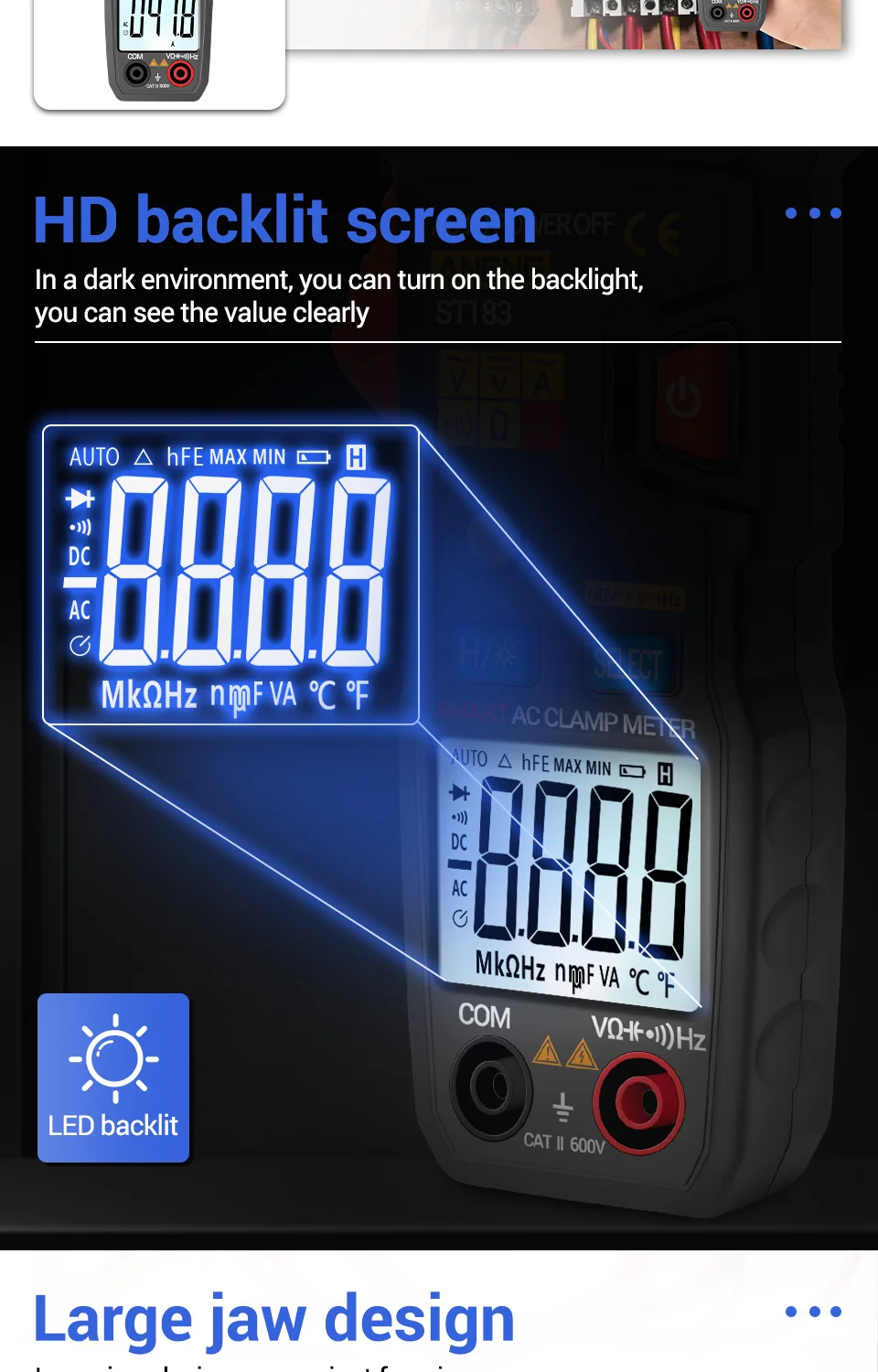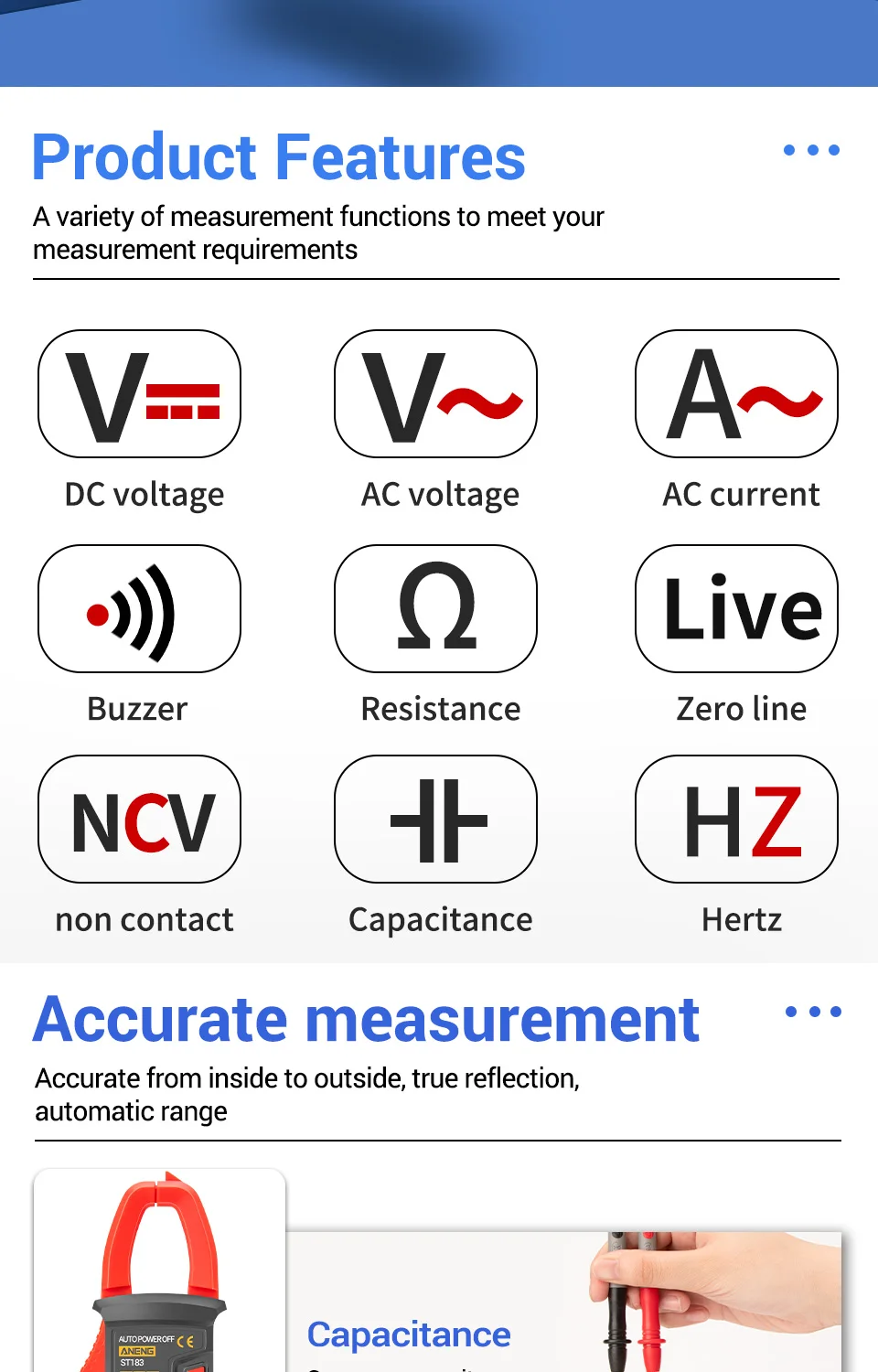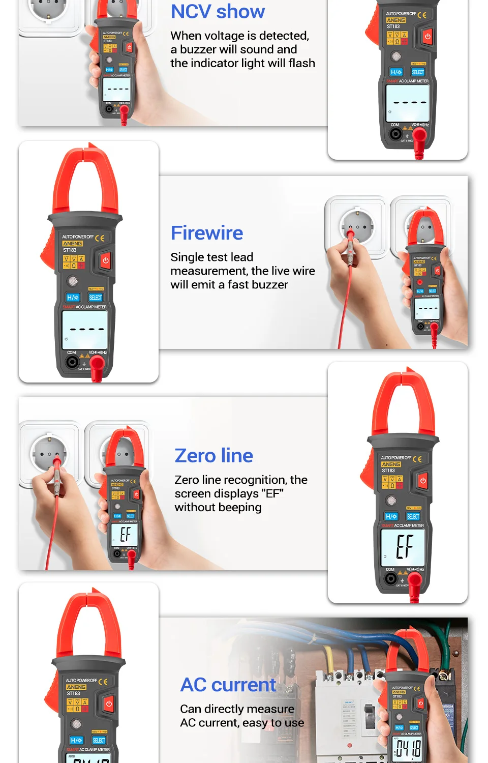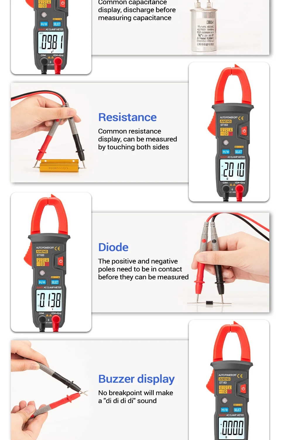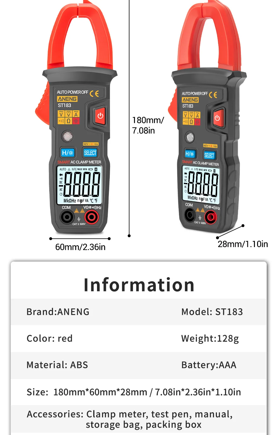Цифровой мультиметр-зажим ANENG ST183, 6000 отсчетов, True RMS