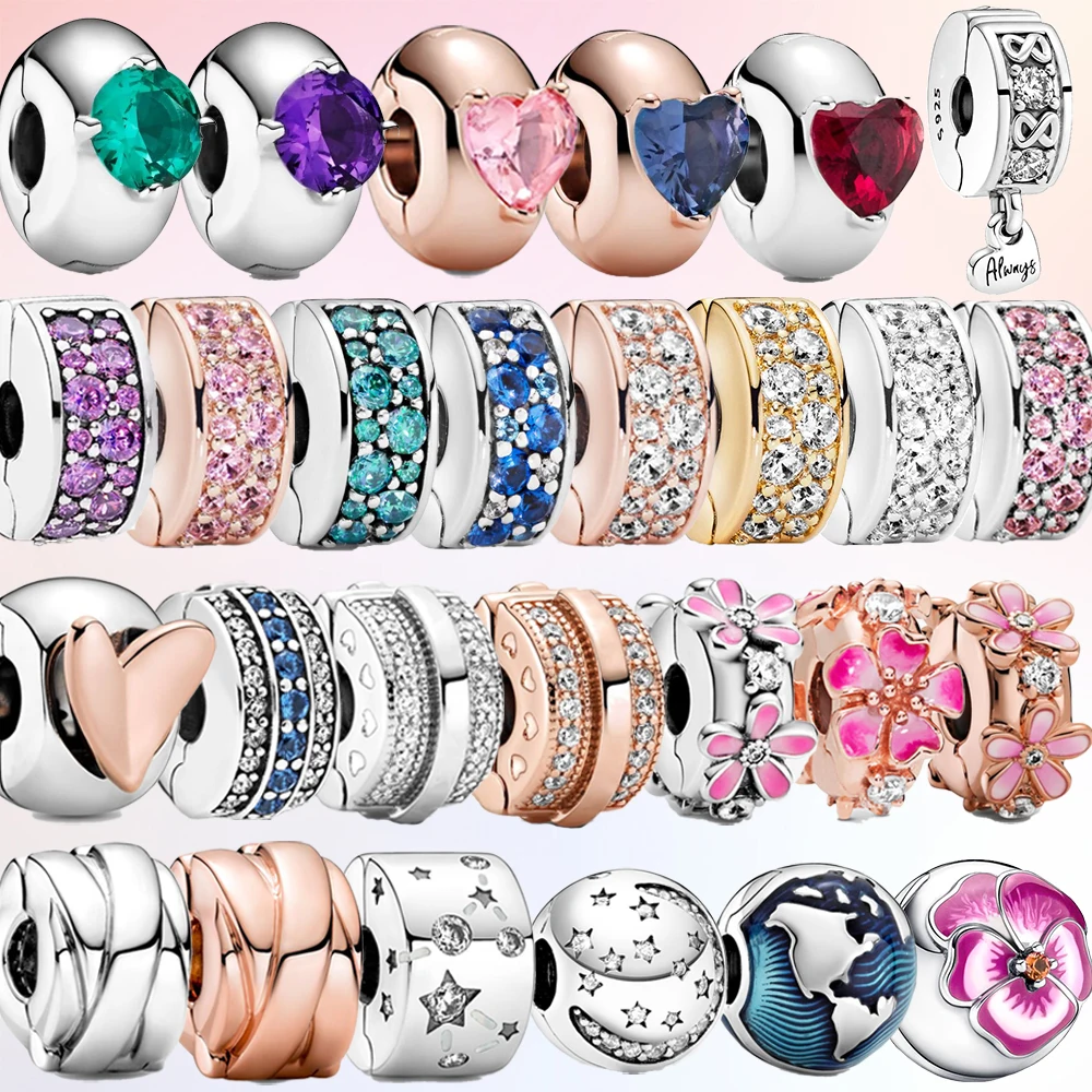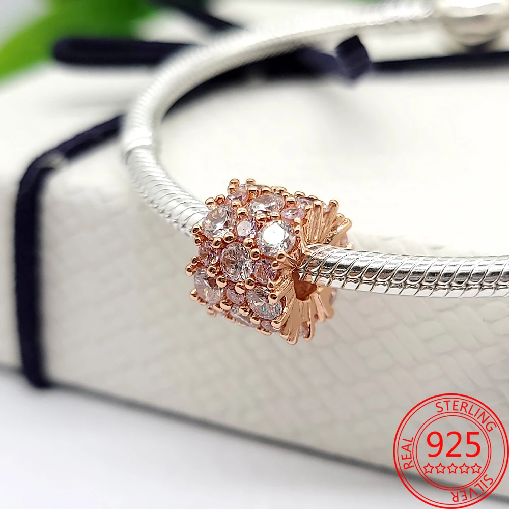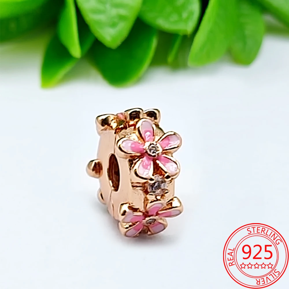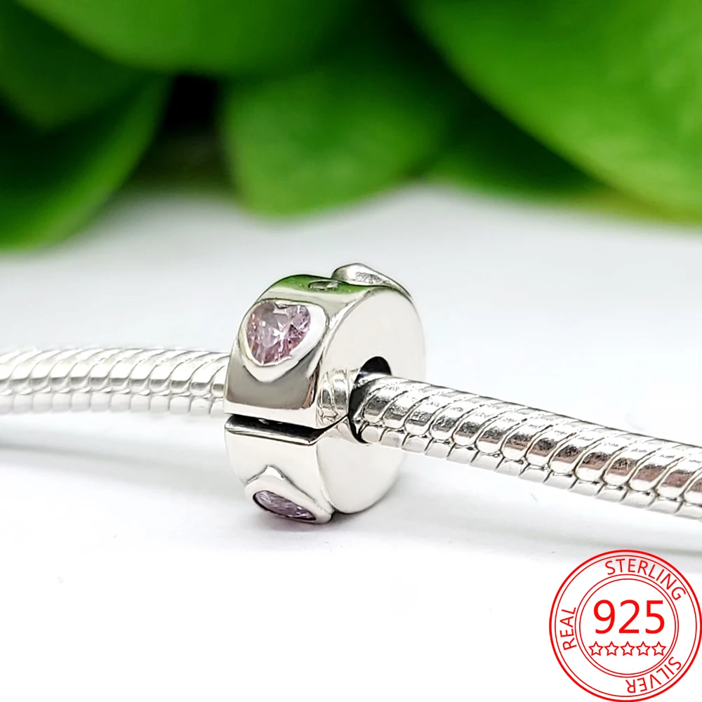 Серебряные бусины-зажимы с рефлексионами S925, бусины божья коровка с круглыми кристаллами в виде маргаритки и сердца, подходят для оригинального женского браслета Pandora