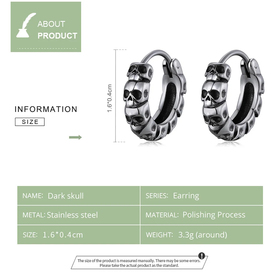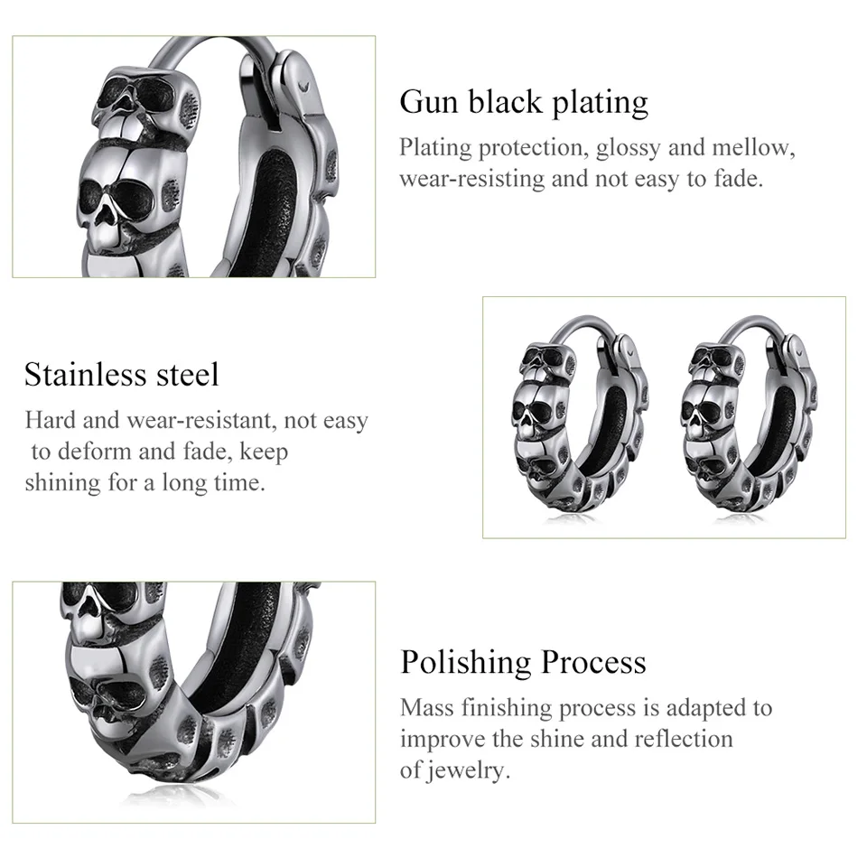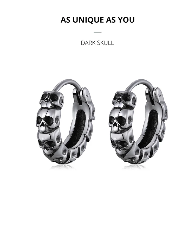 BISAER 1 пара винтажных темных черепов женских и мужских круглых ювелирных изделий в стиле панк-рок 2022