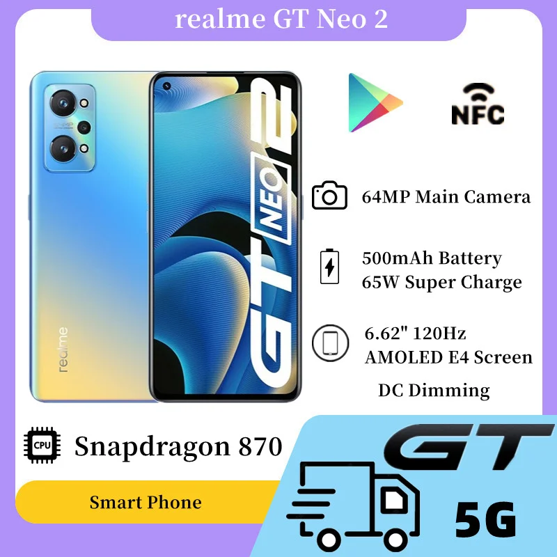 Смартфон Realme GT Neo 2, 6,62 дюйма, 120 Гц, AMOLED E4, Snapdragon 870, аккумулятор 5000 мАч, 65 Вт, NFC