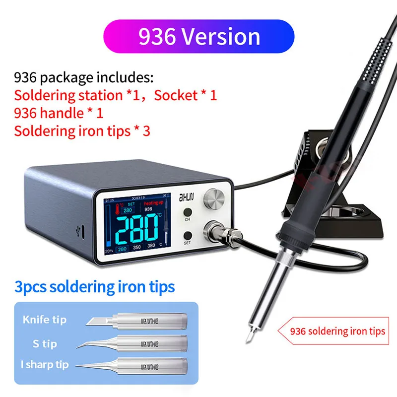 Описание: JC AIXUN T3A 200 Вт Интеллектуальная паяльная станция (T12 ручка + 3 наконечника) Интеллектуальная паяльная станция в мире first200WFull 3 tipsHigh качество с различными формированиями включены 10 ведущих функций: 1. Подключение к платформе Aixun для бесплатного обновления программного обеспечения автоматически, безлимитное обновление функции. 2. Принять 200 Вт Супер источник питания, только занимает 4 секунды для паяльника C245 для повышения до 380 ℃. 3. Интеллектуальное распознавание цели сварки и окружающей среды, интеллектуальная компенсация мощности и автоматическая защита. 4.2.4-дюймовый цветной дисплей, 100-480 ℃ регулируемая температура, в режиме реального времени. 5. Поддержка 936, T12, T245 три ручки, автоматическая идентификация модели ручки и рабочее состояние. 6. Персональная привычка к температурам, трехканальная температура быстрого переключения, Регулировка ручки. 7. Хост имеет встроенный датчик температуры окружающей среды, чтобы избежать работы с высокой температурой. 8. Автоматическая запись рабочего времени, автоматическое напоминание об усталости. 9. Максимальная поддержка 24 V-8A токовый выход, с блоком питания постоянного тока для источника питания и сжигающий эффект. 10. Ультра-сильная Антистатическая изоляция, соответствует промышленному стандарту ESD. Что включает в себя:1xMain Station JC Aixun T3A1xHandpiece держатель в комплекте с наконечником Чистящая губка1xT245 тип наконечника1xCartridge (комплексного сопротивления) с угловой наконечник1 картридж (интегрированное сопротивление) с наконечником ножа1 картридж (интегрированное сопротивление) с прямым наконечником