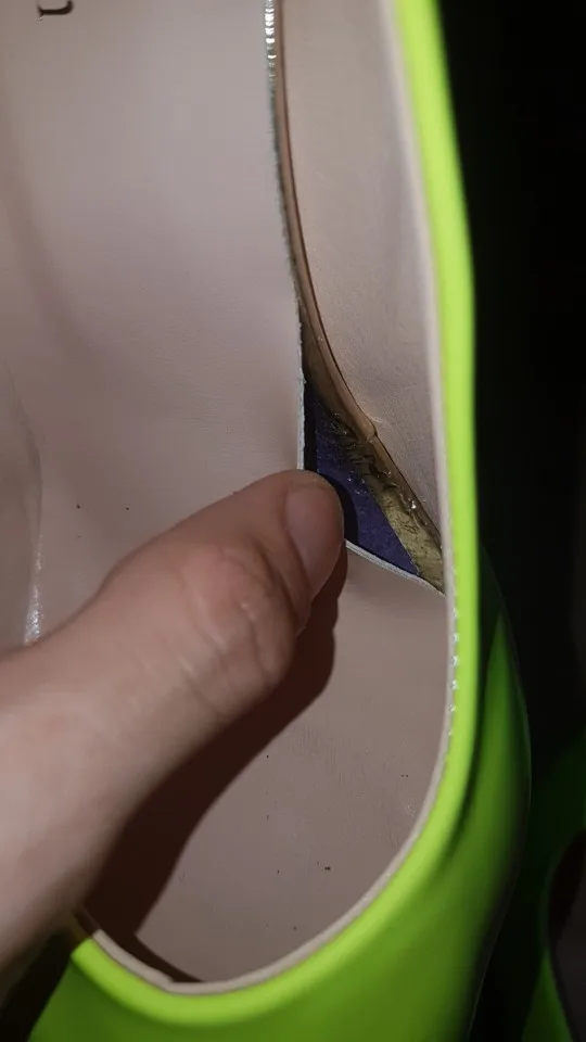 Ну это просто ужас! Такого говна я давно не встречала . Если эти туфли выдержат хоть один выход в свет, то мне повезёт. Не проклеены. Между каблуком и основой расстояние. Есть царапины, видно клей. Всё кривое, косое. Я очень расстроена. Фото прилагаю. С продавцом не общалась