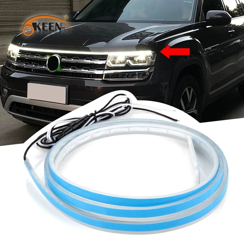 Светодиодные ленты OKEEN 12 В для автомобильных фар, дневные ходовые огни белого цвета, гибкая Водонепроницаемая Мягкая трубка для капота