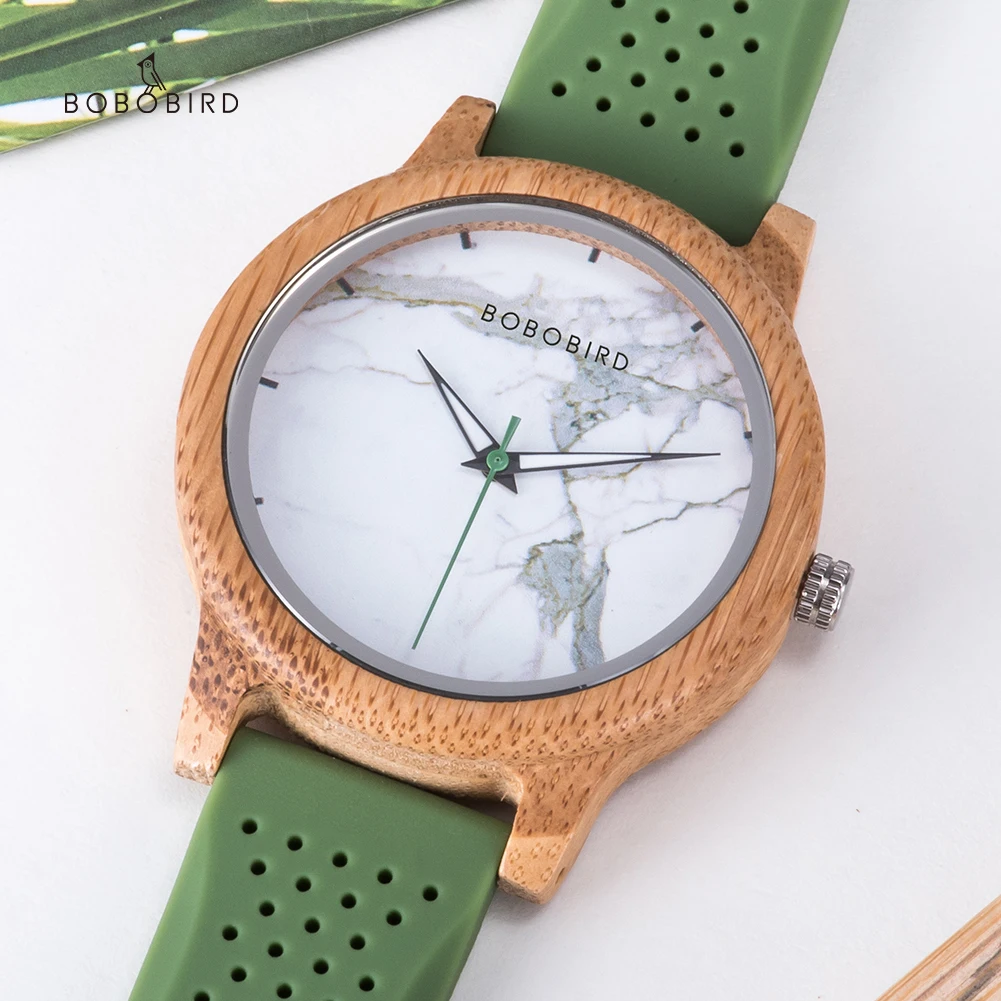 Часы наручные BOBO BIRD женские с бамбуковым ремешком, брендовые Роскошные повседневные, с силиконовым ремешком, с надписью на деревянном ремешке
