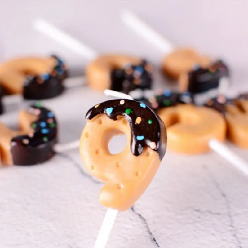 Подсвечник для торта на день рождения, украшение для выпечки, милые цифры, Пончик, 0-9, детский праздник, товары для вечерние, десертный стол, свадьба