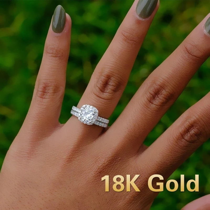 Роскошное 18K Белое Золото Круглое Белое кольцо с мусанитом набор обручальных колец (Размер 5-12)