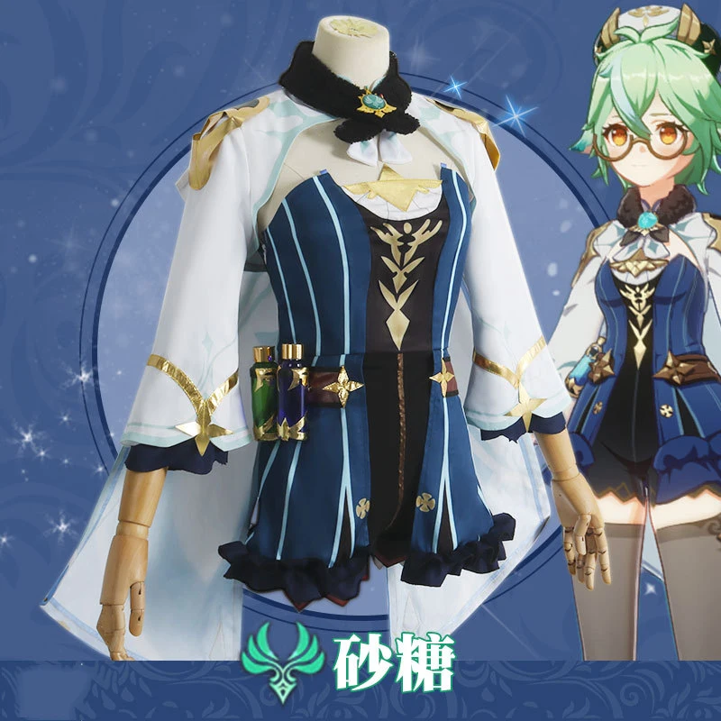 Косплей-костюм аниме Genshin Impact в виде сахарозы, игровой костюм, милое платье в стиле Лолиты, праздничное вечернее платье с персонажами, женская форма