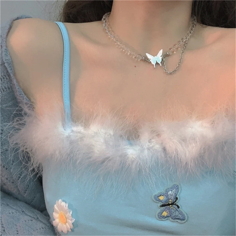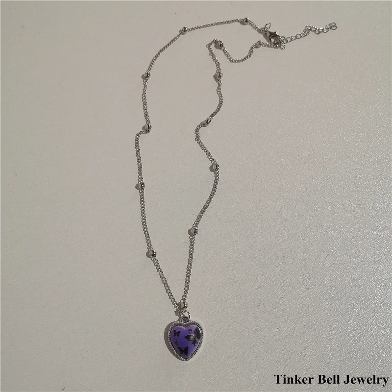 Женское винтажное ожерелье с подвеской в виде сердца и бабочки