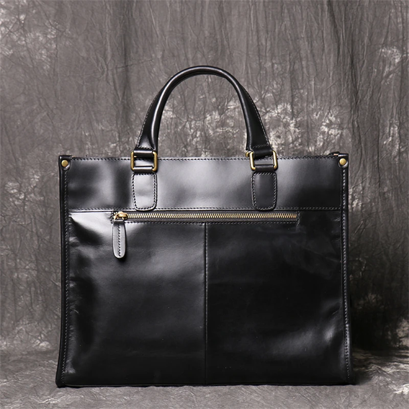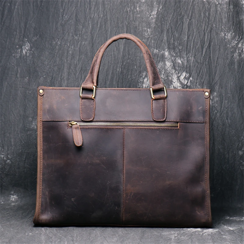 Высококачественный Новый Винтажный Толстый коричневый черный деловой портфель A4 из натуральной кожи для ноутбука 14 дюймов, мужской портфель, сумка-мессенджер M7073