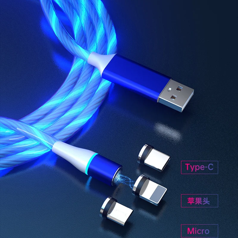 Магнитный светящийся кабель для зарядки, шнур зарядного устройства,...