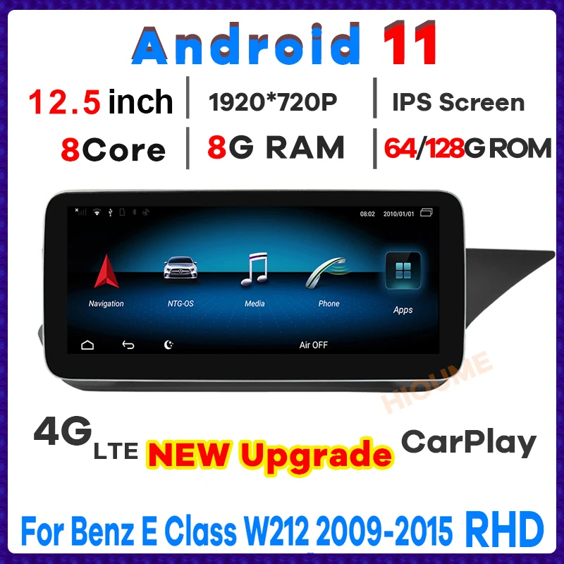12,5 "Android 11 8 ядер 8G + 128G GPS-навигация, мультимедийный плеер, радио, головное устройство для Mercedes Benz E Class W212 2009-2015RHD