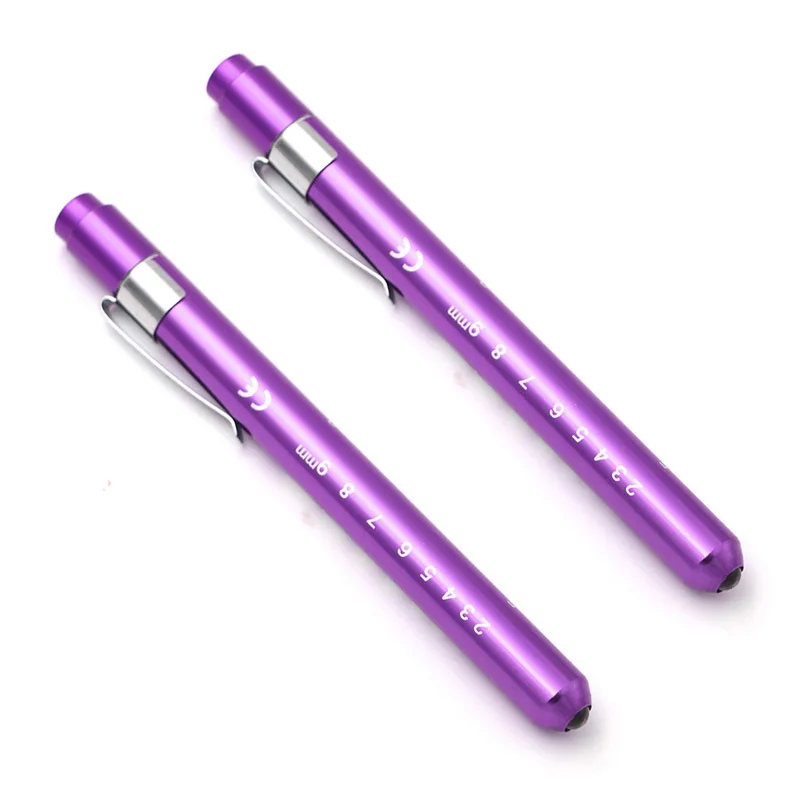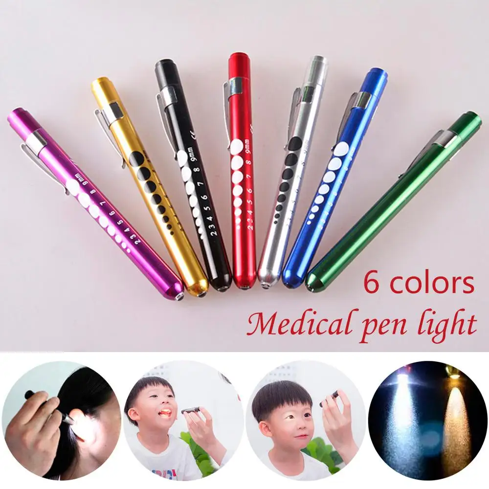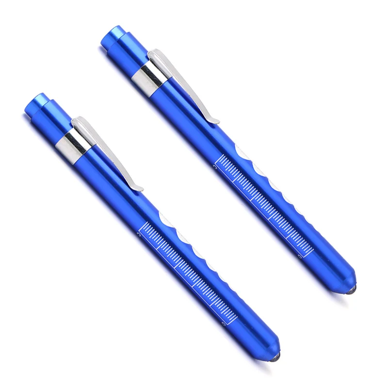 2 шт., алюминиевая карманная ручка, медицинский фонарь, фонарик, отоскоп, светодиодный фонарик, офтальмоскоп для оказания первой помощи с таблицей учеников