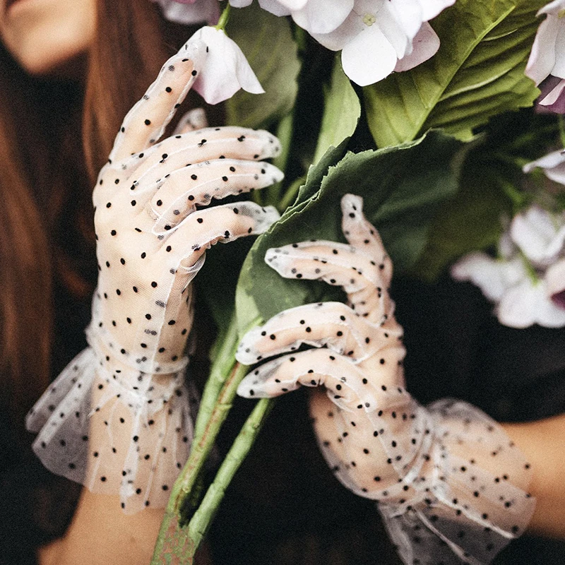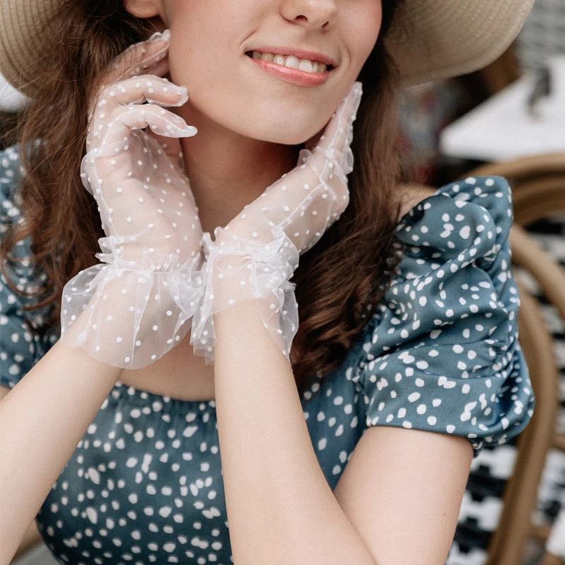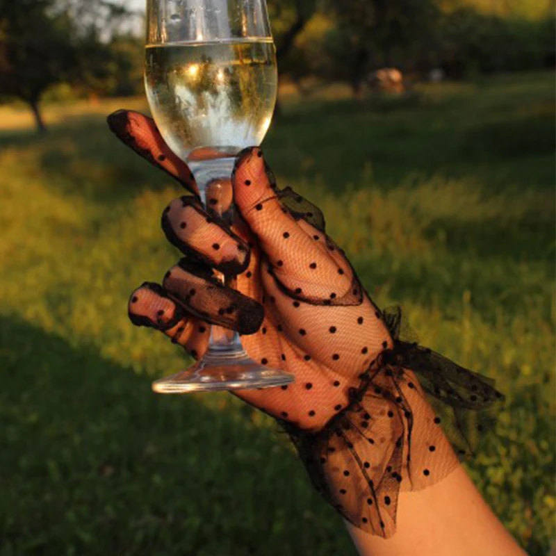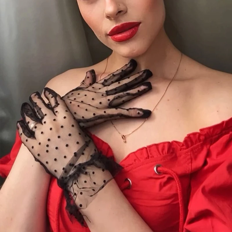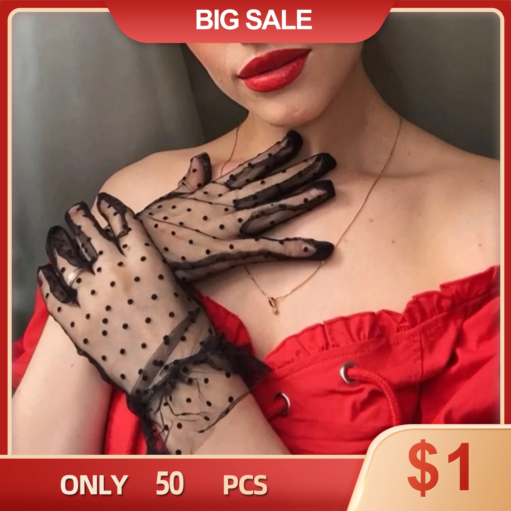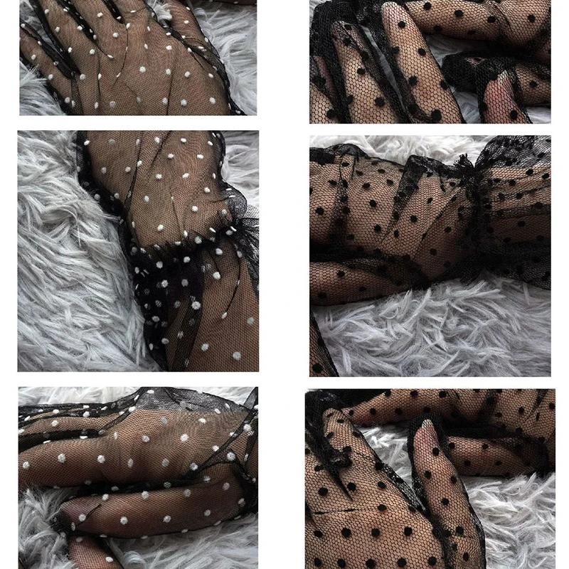 Кружевные женские перчатки с принтом в горошек, элегантные эластичные тонкие прозрачные черные перчатки, летние гибкие перчатки для защиты от солнца, маскарадные варежки