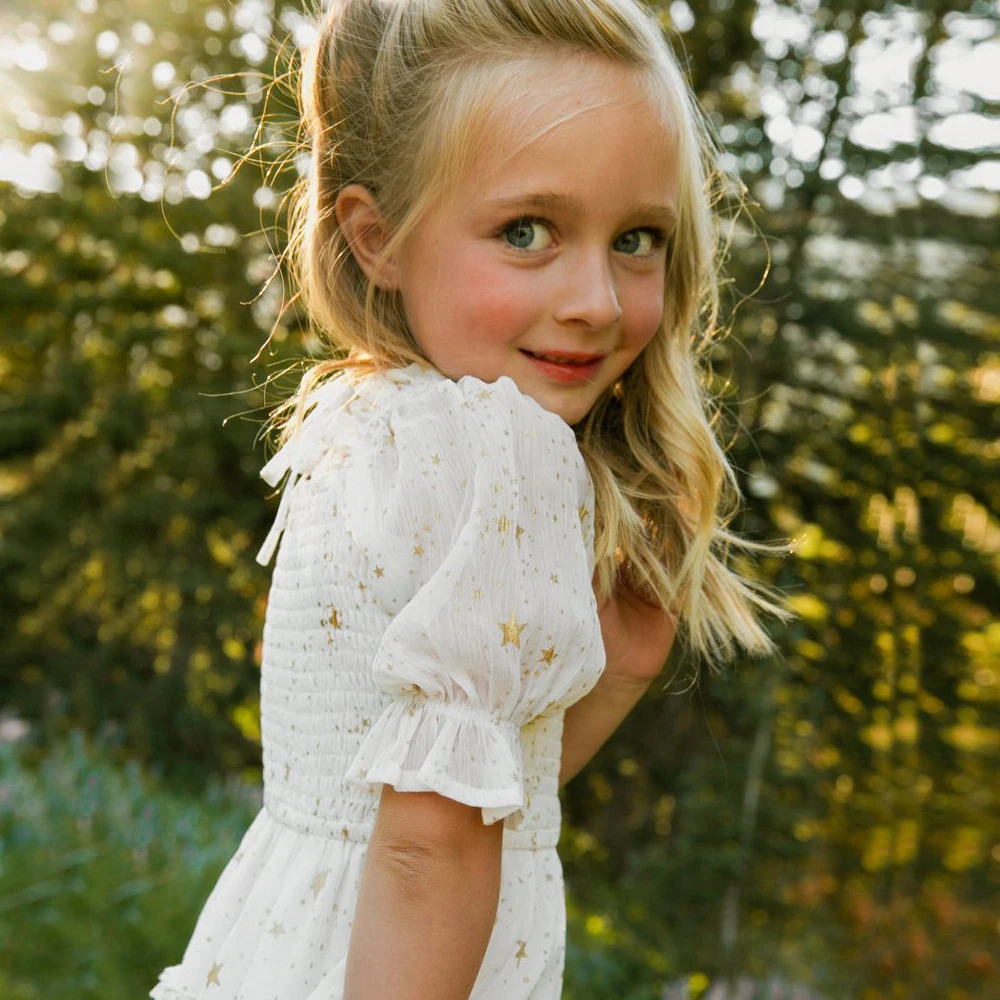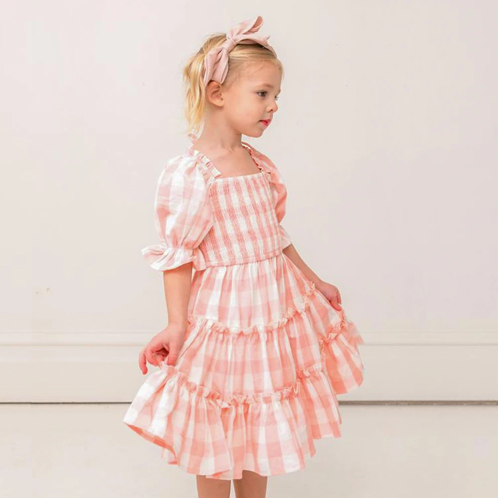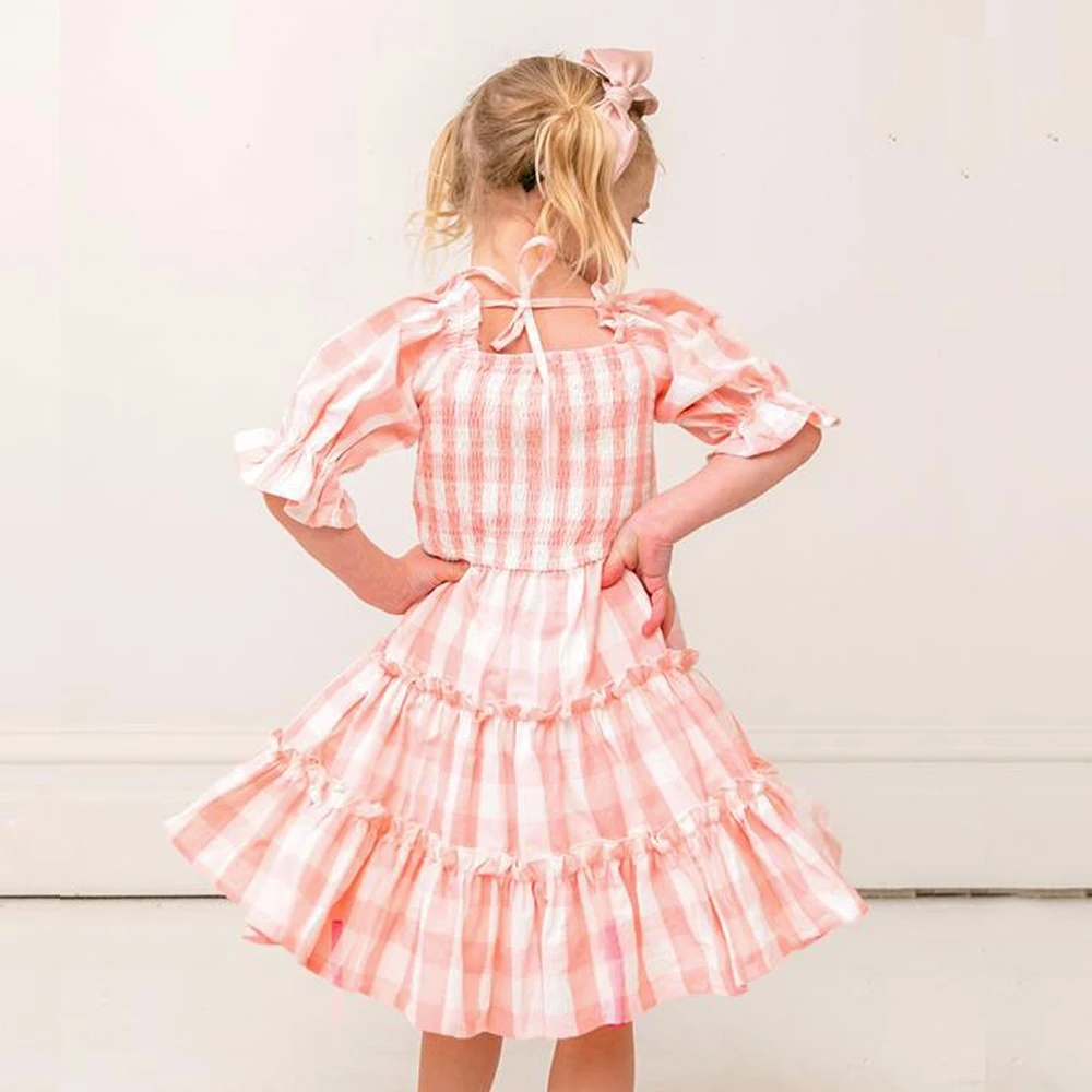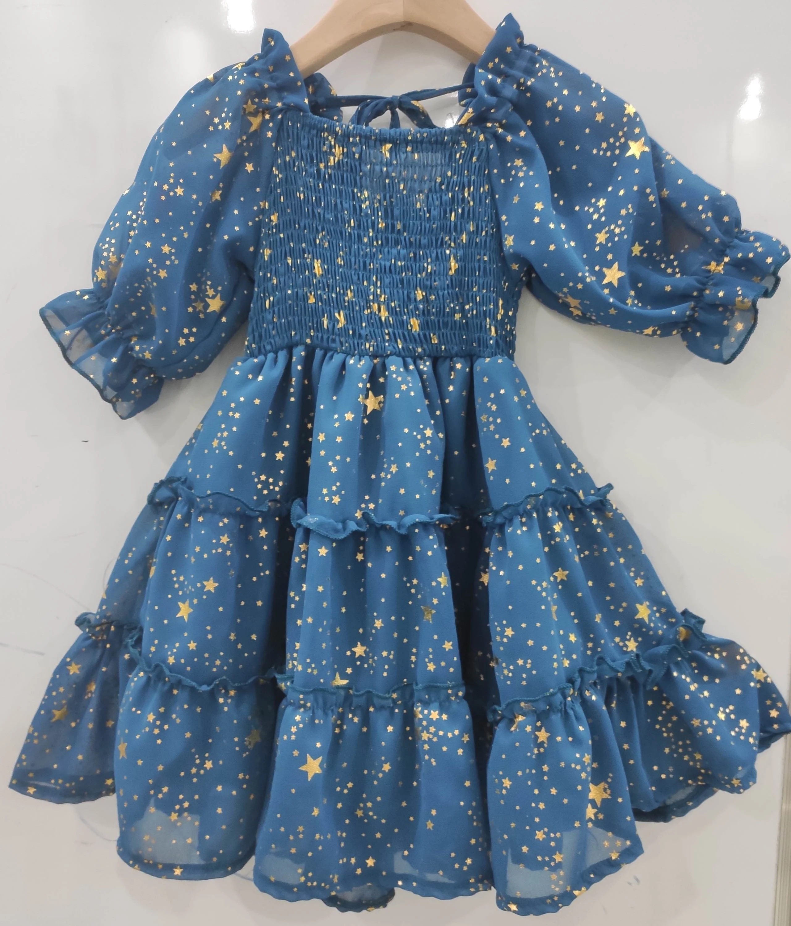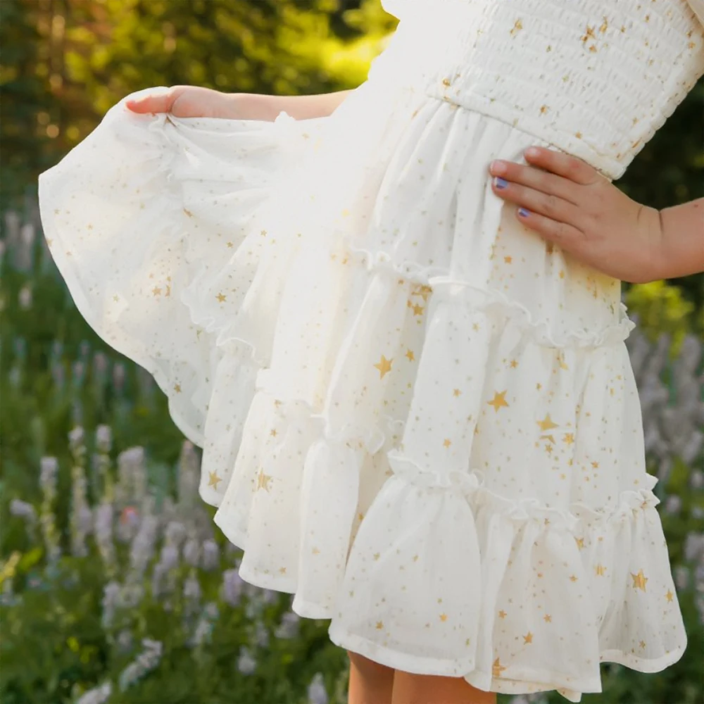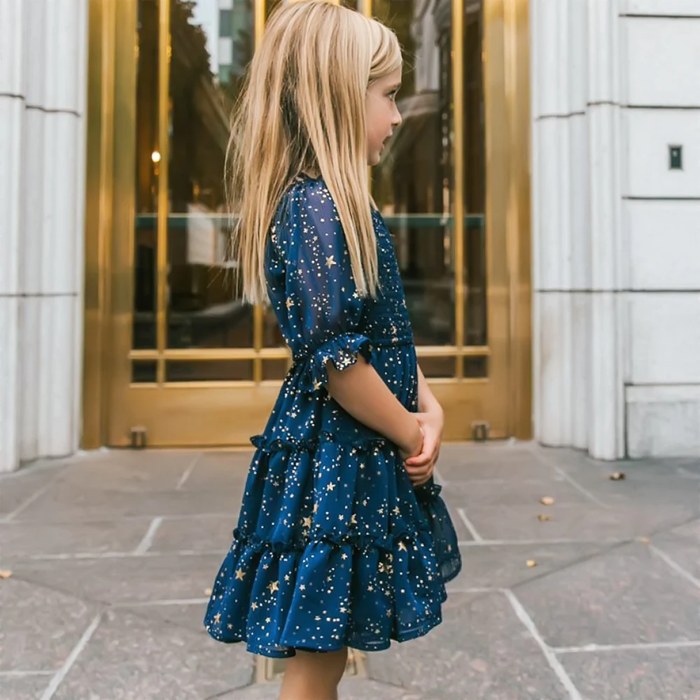 Летнее платье для девочек с блестками и оборками, одежда с коротким рукавом для детей, новый модный шифоновый костюм принцессы для вечеринки
