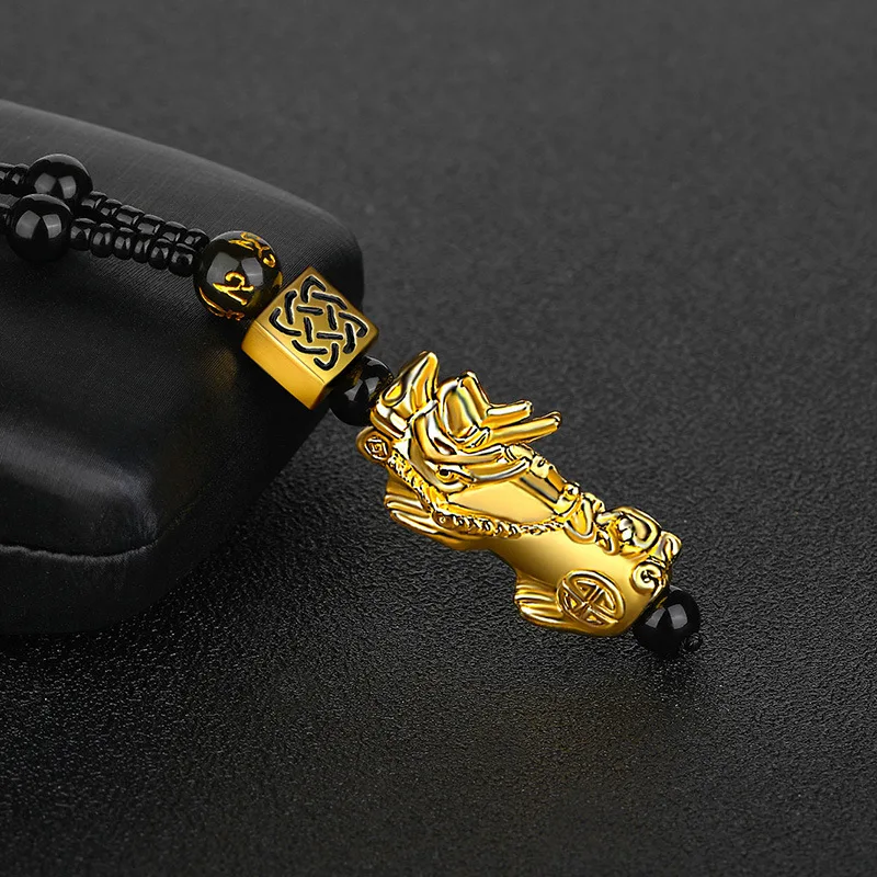 Ожерелье с подвеской Obsidian Pixiu, имитация 24-каратного золота, ...
