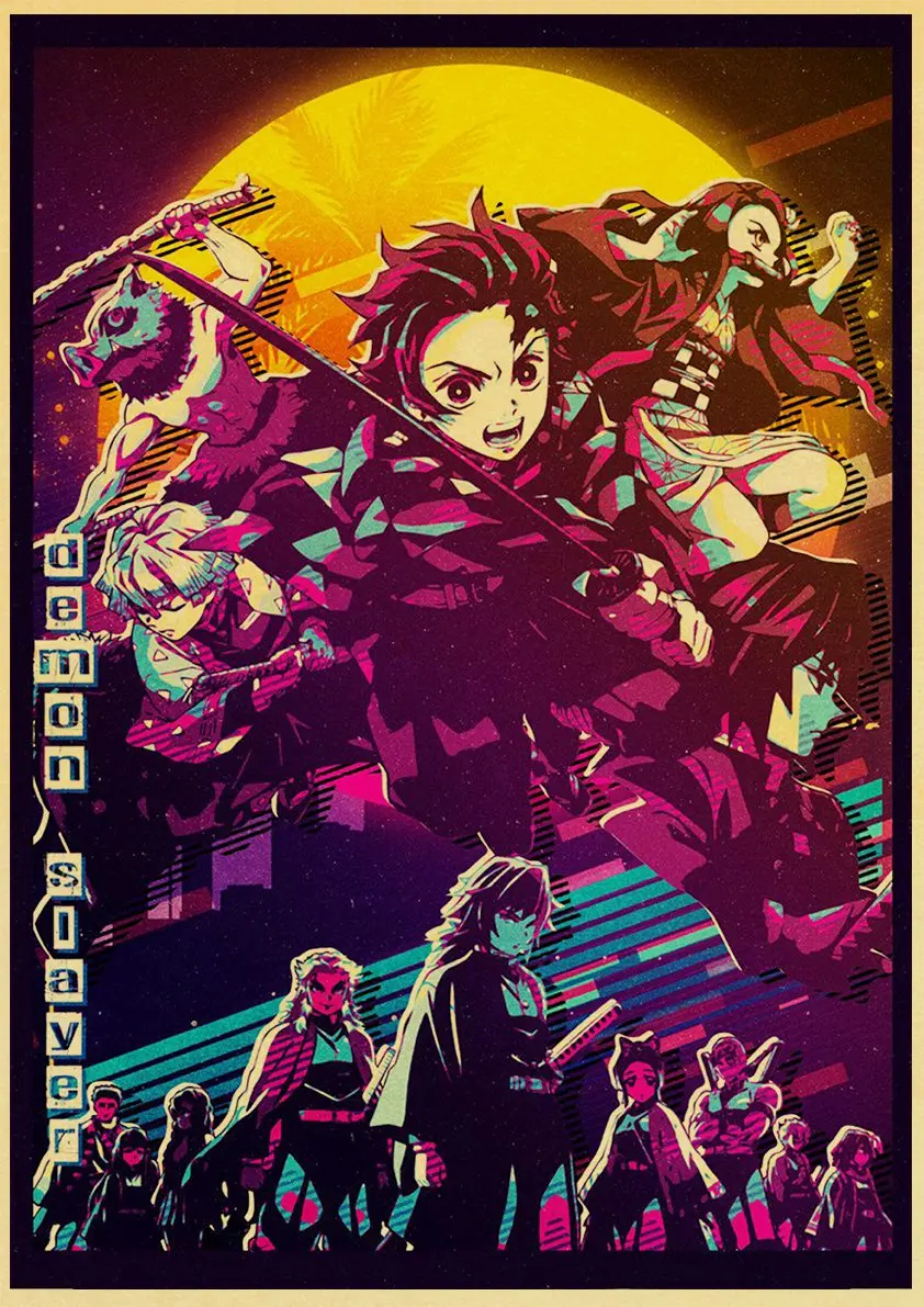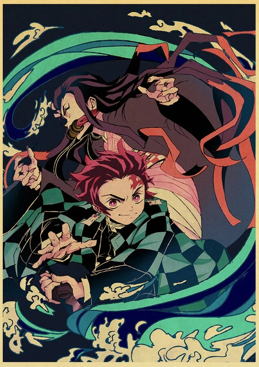 Постер в стиле ретро с изображением рассекающего демонов киметасу No Yaiba Tanjirou Nezuko