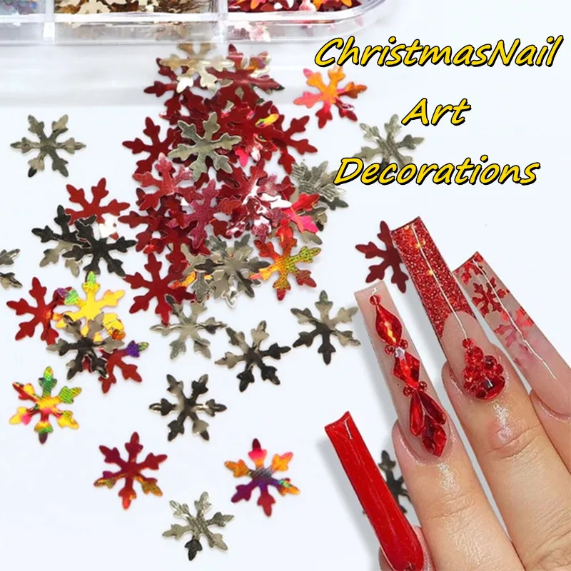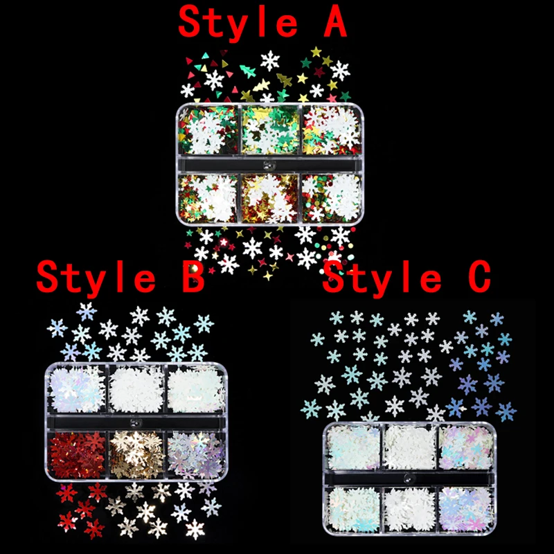Разноцветные голографические рождественские, в пластиковой коробке, снежинки, дерево, Звездные огни, хлопья для ногтей, ломтики, блестки для ногтей