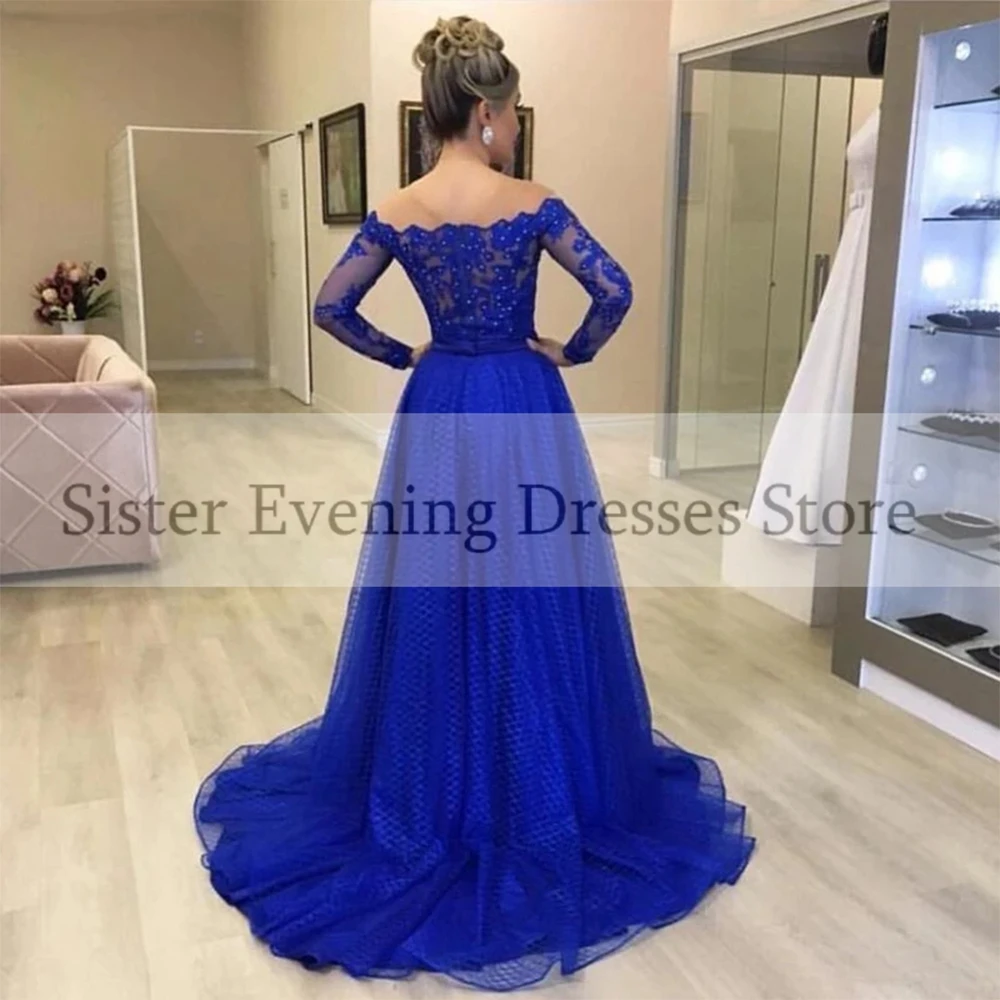 2022 женское современное кружевное платье для матери невесты, синее платье с поясом-бантом и аппликацией для матери, королевское свадебное платье с длинным рукавом