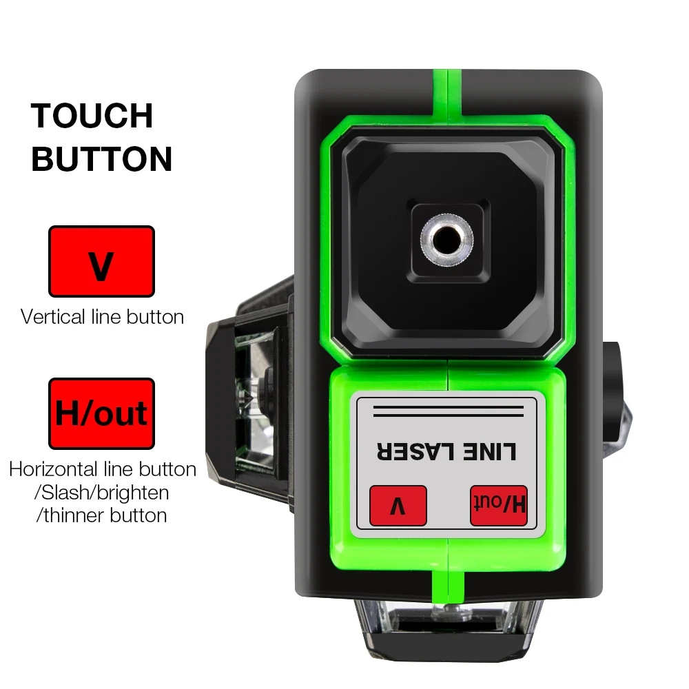 Мощный самонивелирующийся лазерный 3D уровень, 12 зеленых линий, 360 градусов, горизонтальный и вертикальный
