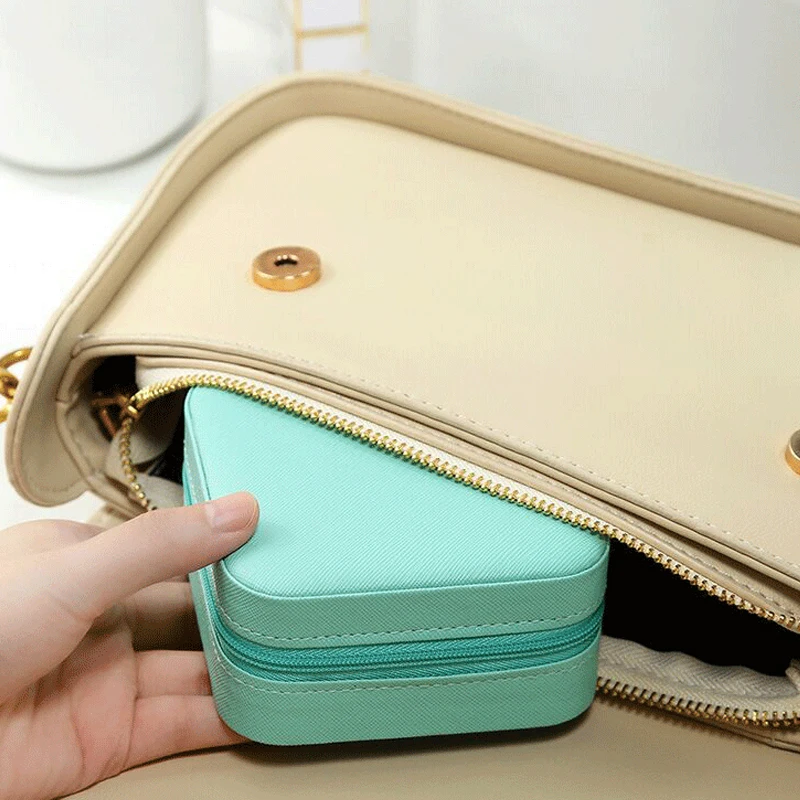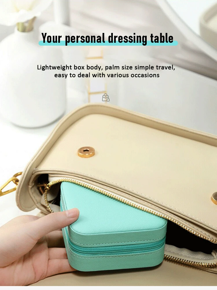 Высококачественный материал:Наш ящик для хранения ювелирных изделий Изготовлен из искусственной кожи, прочный, но приятный на ощупь, не абразивный, не выцветает, не деформируется и легко чистится влажной тканью. Подкладка из мягкой бархатной ткани с бусинами защищает ваши ювелирные изделия от царапин. Легко открывайте и закрывайте благодаря прочной молнии.