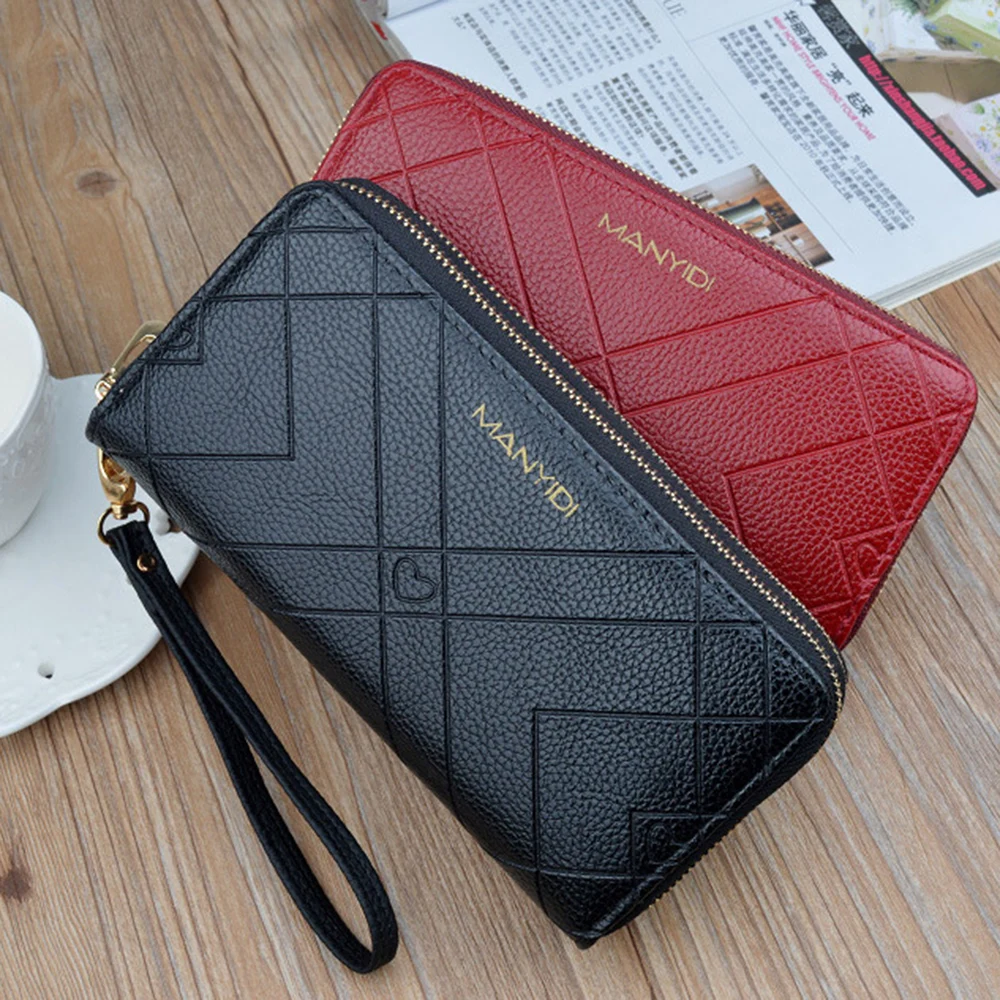 Новинка 2022, Модный женский кошелек из искусственной кожи с двойной молнией, вместительный кошелек, длинный держатель для карт и телефона, чехол, клатч