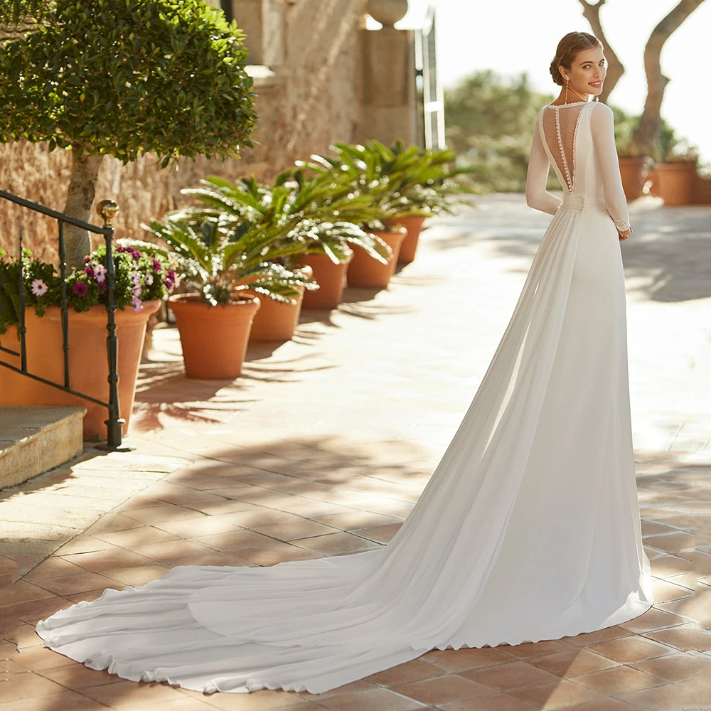 UZN простые шифоновые свадебные платья в стиле бохо с длинными рукавами и вырезом-копом, кружевные свадебные платья