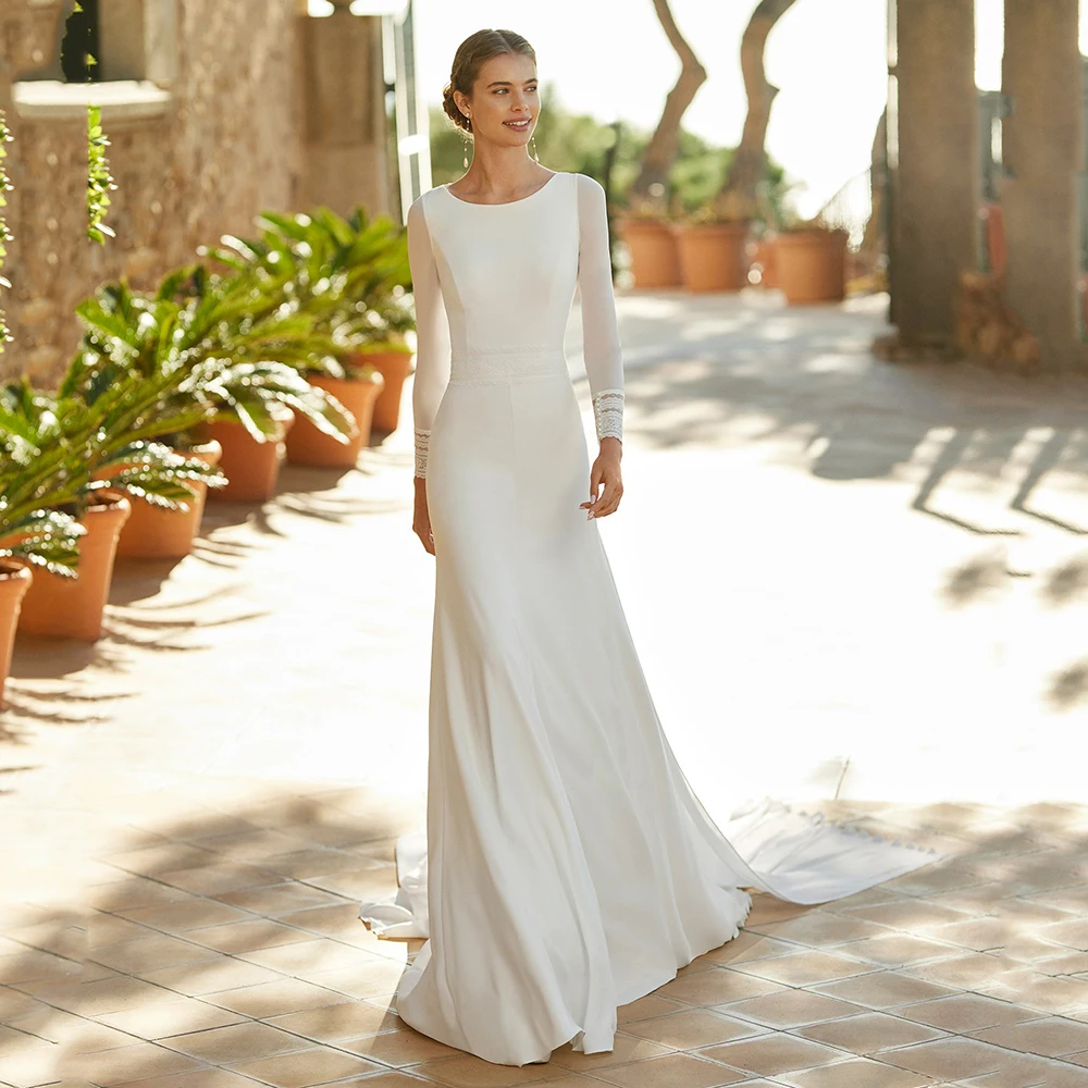 Простое шифоновое платье-Русалка UZN в стиле бохо, свадебные платья Sccop с воротником и длинными рукавами, свадебные кружевные платья, свадебные платья