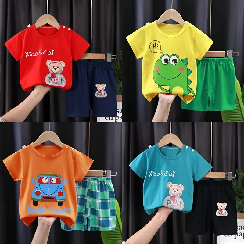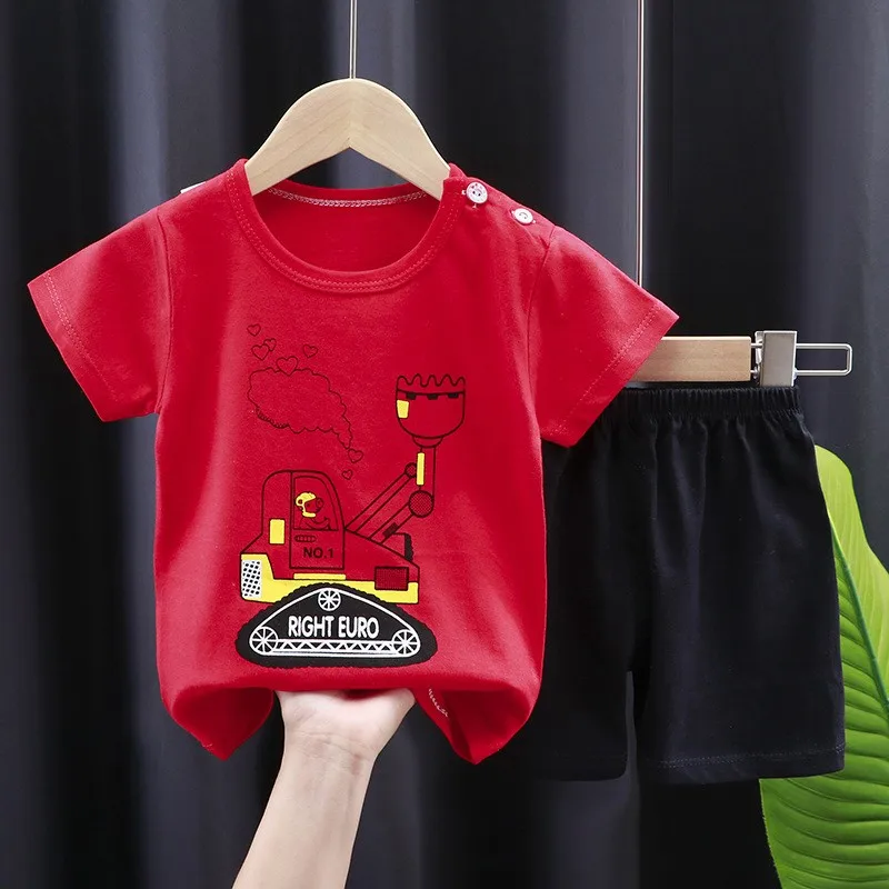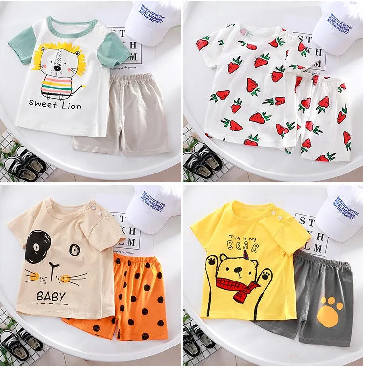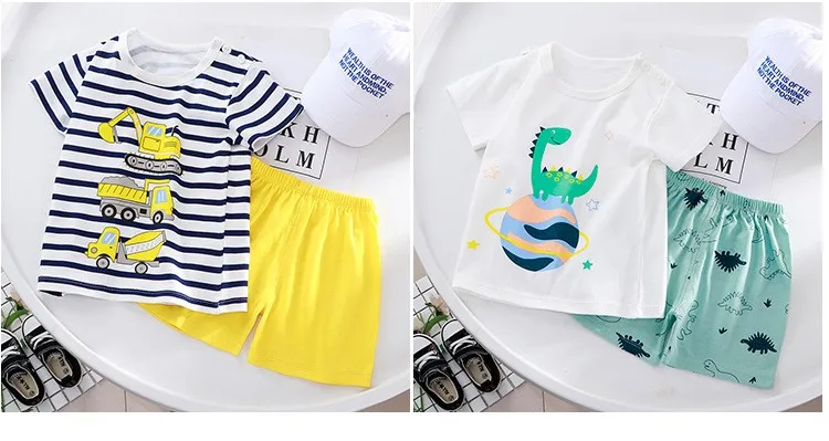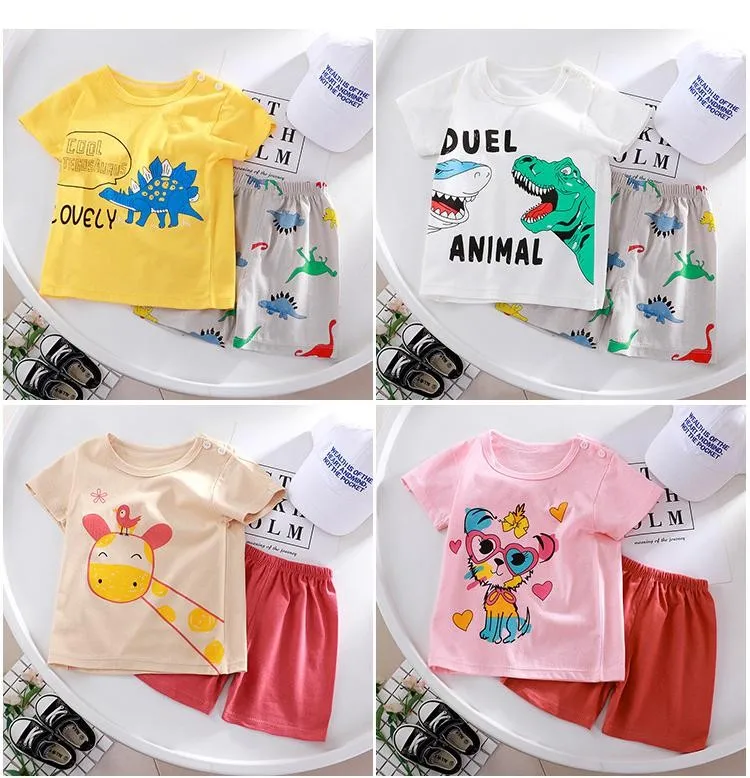 Детская летняя одежда От 1 до 5 лет, модный мультяшный костюм из 2 предметов, футболки с коротким рукавом для мальчиков и девочек + шорты