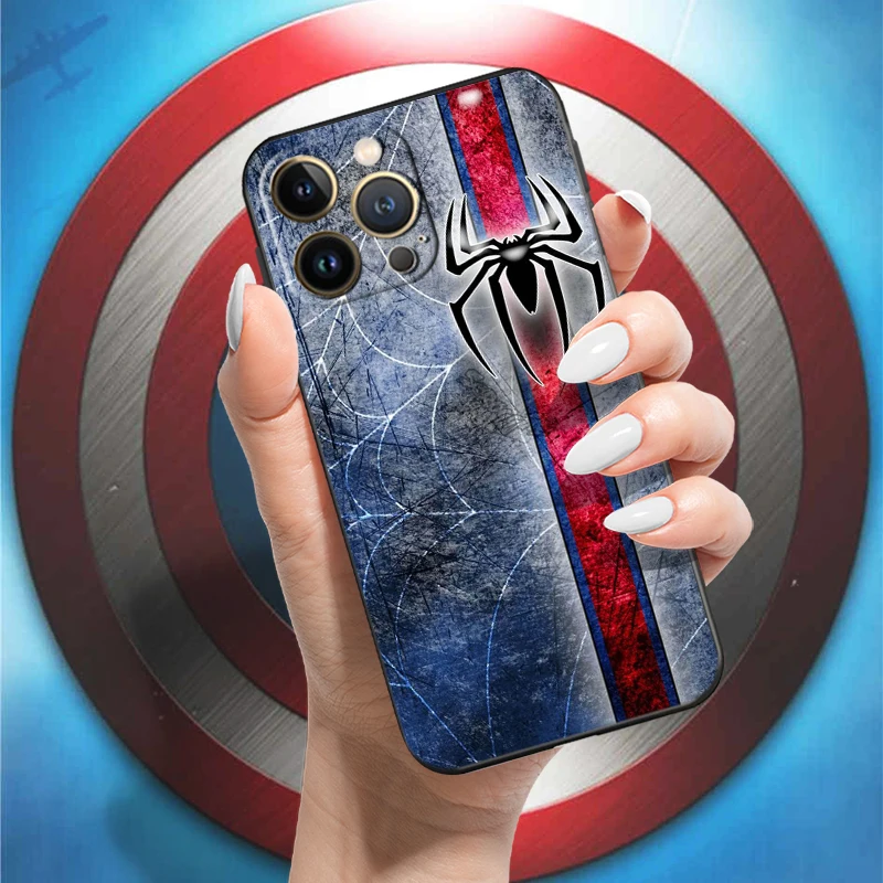 Чехол с логотипом Человека-паука для Apple iPhone 13 12 11 Pro Max 13 12 Mini X XR XS Max 5 6 7 8 Plus, черный бампер