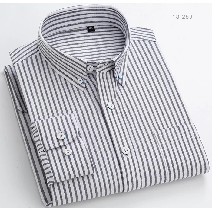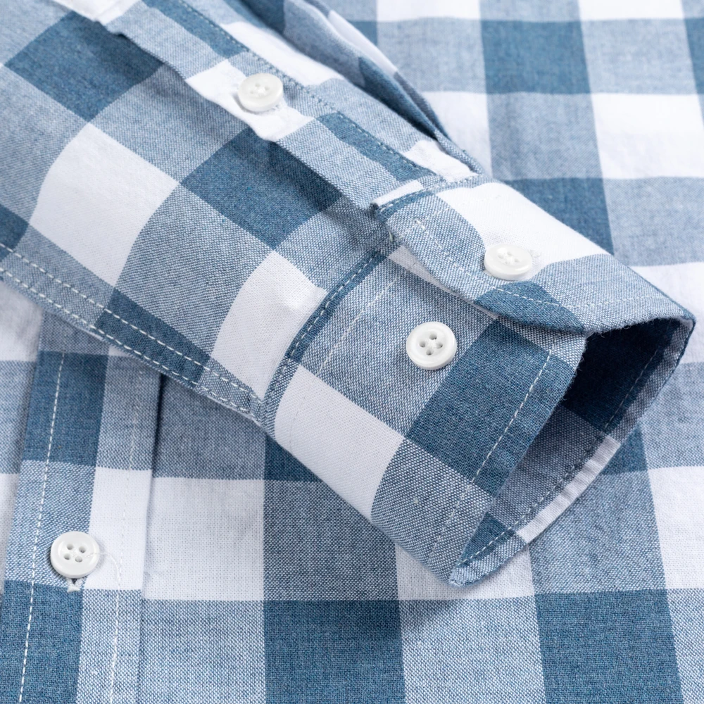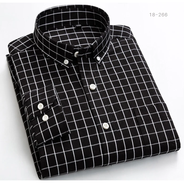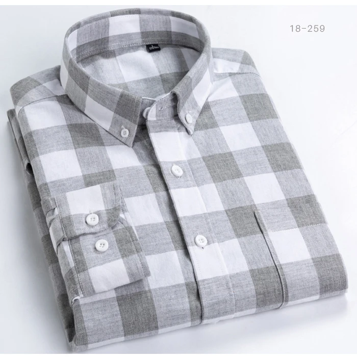 Мужская хлопковая рубашка в английскую клеткув полоску, повседневная классическая рубашка в клетку с одним накладным карманом и длинными рукавами, на пуговицах