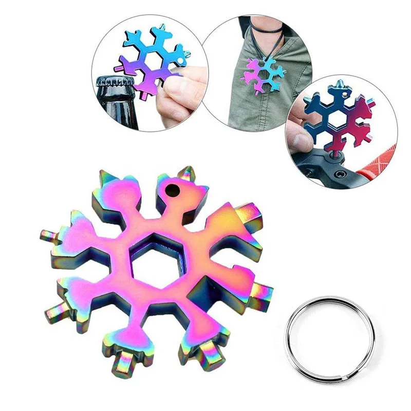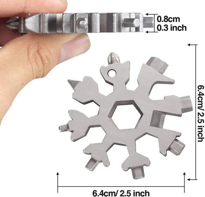 Многофункциональный инструмент из нержавеющей стали 18 в 1 был первоначально разработан как инструмент для сноуборда.Вы можете использовать его для открытия бутылок, винтов, фиксации лыж и велосипедов, обрезанных коробок и т. д.Его можно использовать в качестве подарка на день рождения или праздничного подарка друзьям и близким, которые любят кемпинг, активный отдых и дизайн инструмента. Это будет очень удивительным подарком.Легко носить с собойОчень подходит для скрытия в карманах, перчатках, кошельках, рюкзаках или подвешивания на кольцах для ключей.Уникальный дизайн снежинкиМногофункциональный инструмент снежинка является первым выбором для военных энтузиастов и инструментов для повседневного использования на открытом воздухе.