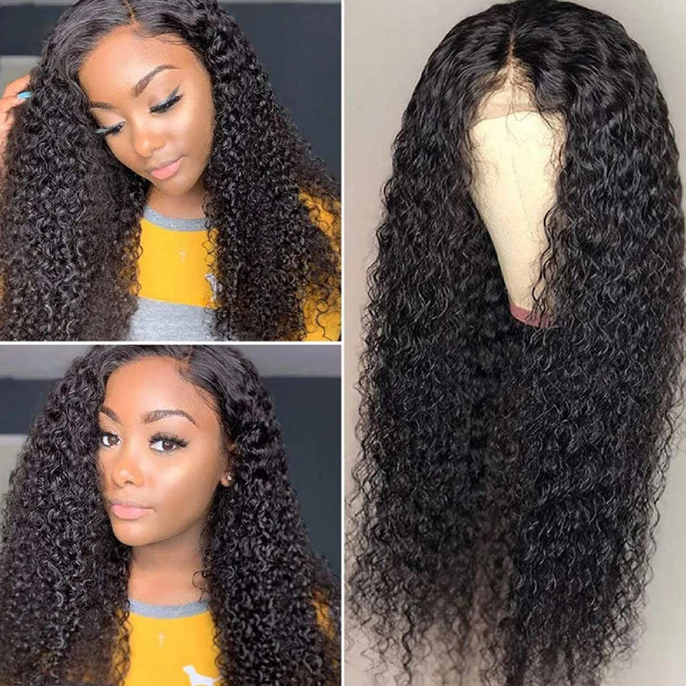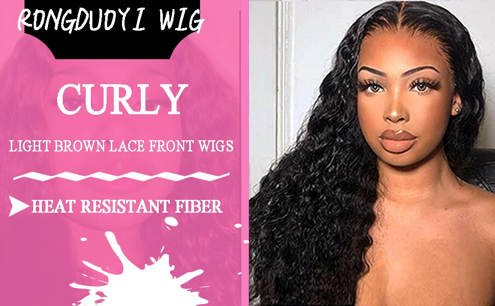 RONGDUOYI Remy Кудрявый кудрявый Парик фронта шнурка Парик косплей черный волнистый Парик фронта шнурка