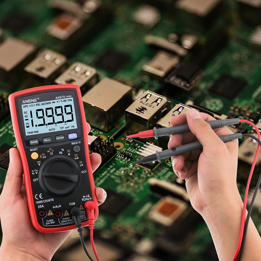 Цифровой мультиметр ANENG AN870, 19999 отсчетов, Автоматический диапазон, Бесконтактный Омметр, амперметр напряжения постоянного и переменного тока, вольтметр, тестер температуры