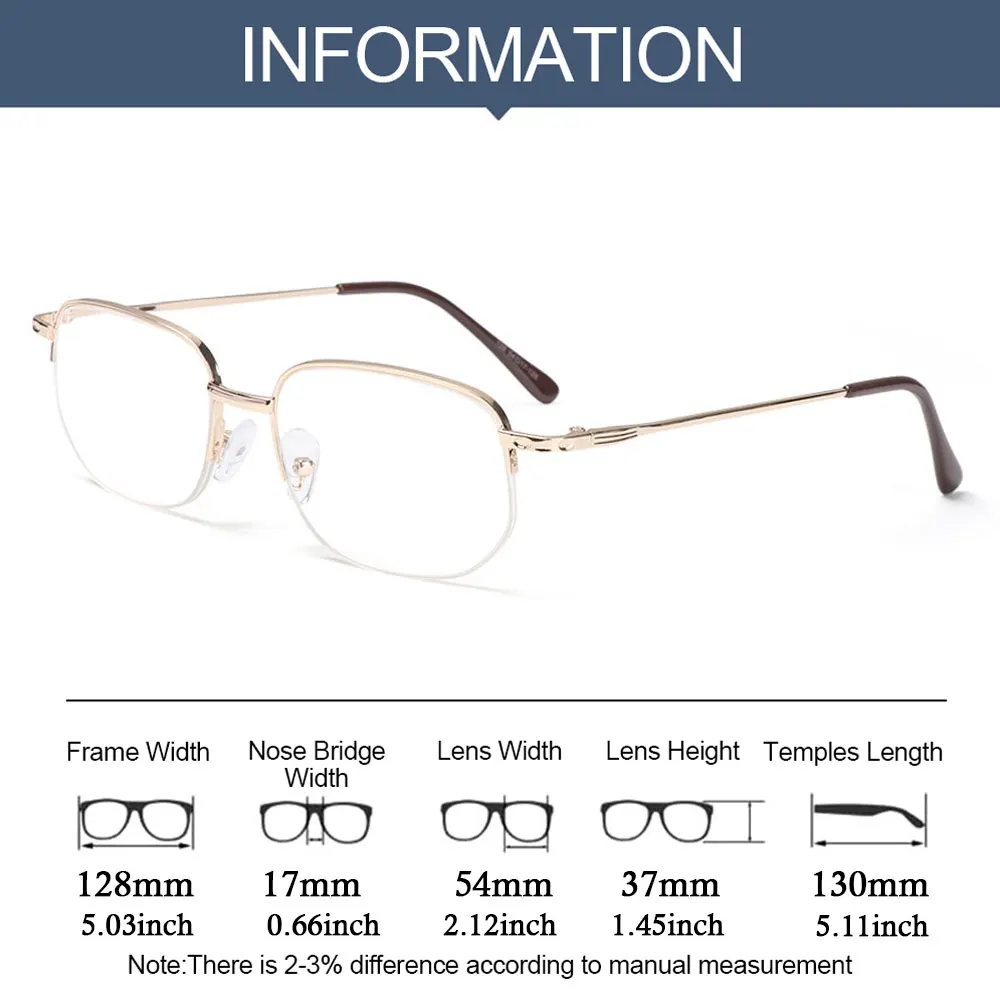Очки для чтения с высокой четкостью для мужчин и женщин, мужские металлические пресбиопические очки с полуободковой оправой, увеличительные очки с диоптриями + 1,00 + 4,00