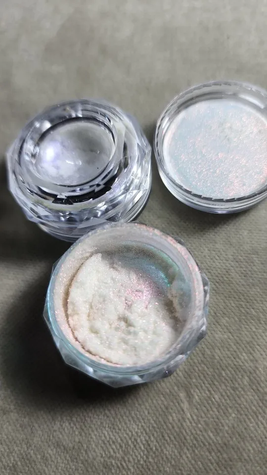 Что касается порошка Авроры: очень большая задержка в заказе. Это даже не похоже на то, что на фото!Тем не менее, мне понравилось. Это очень маленький и очень маленький продукт. (В моем ногте видно, как это отражает).