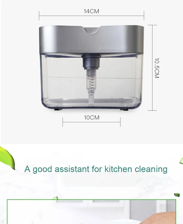 2 in 1 design,soap dispenser and spongeDispenses the perfect amount of dish soap up onto the sponge