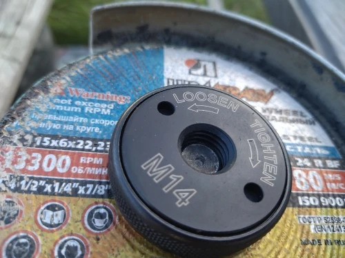 Отличная гайка. Теперь ключ не нужен. Откручивается рукой без проблем. При провороте обоймы отскакивает прижимающая часть. Дальше откручивается легко. Подходит четко для маленьких болгарок 125мм. Большей проверить нет возможности. На китайскую Дриллпро тоже подошла как родная.