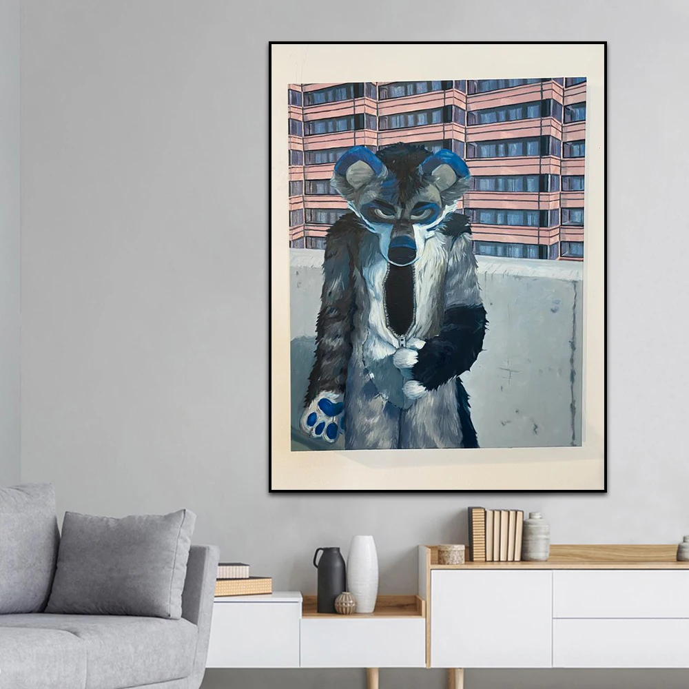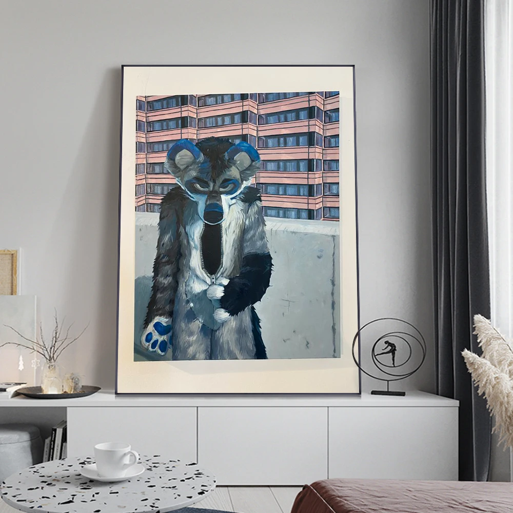 Абстрактный постер на холсте, пушистое пальто с животными и тонкими людьми, винтажная художественная картина в стиле ретро для спальни, без рамки, домашний декор для комнаты