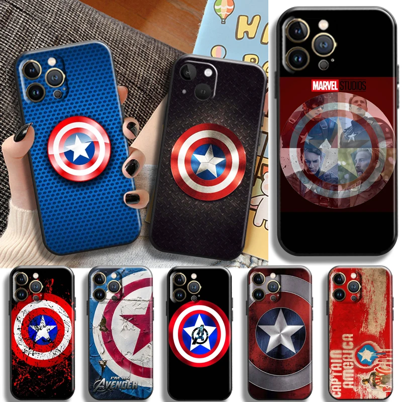 Чехол для телефона с логотипом Captain America, жидкий силиконовый чехол для Apple iPhone 13, 12, 11 Pro Max, 13, 12 Mini, X, XR, XS Max, 5, 6, 7, 8 Plus