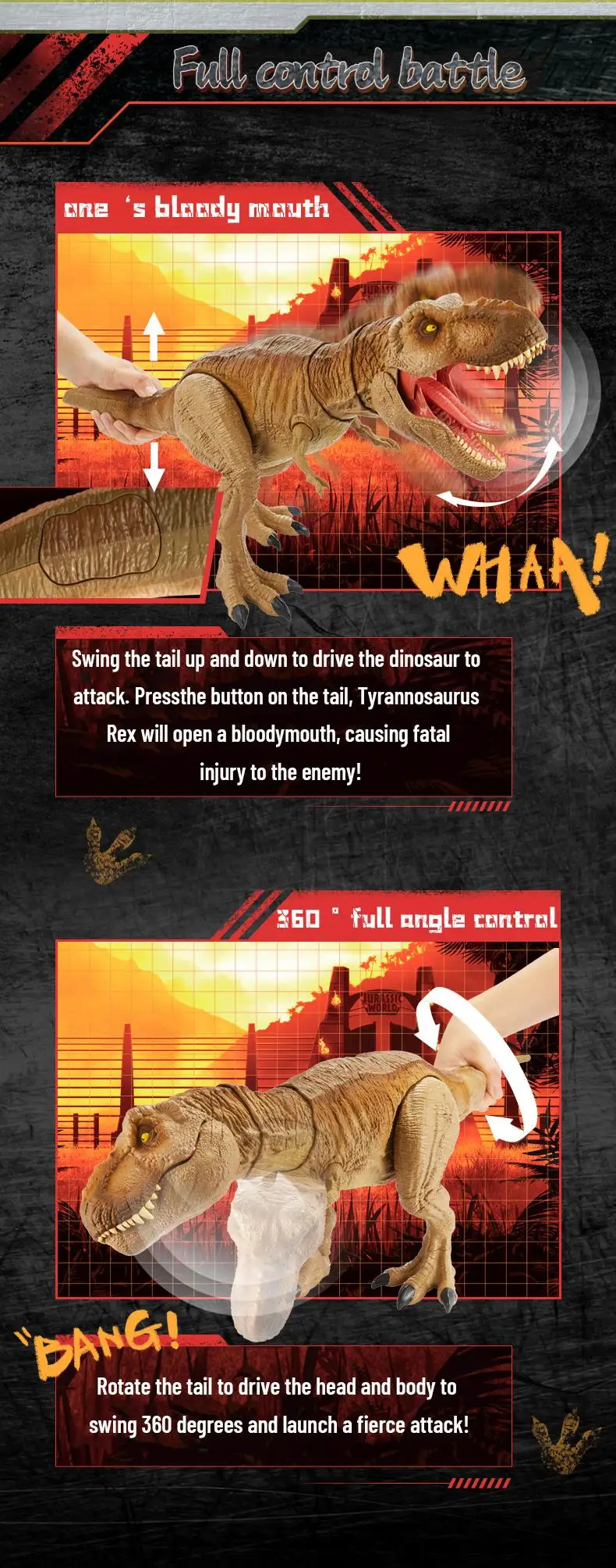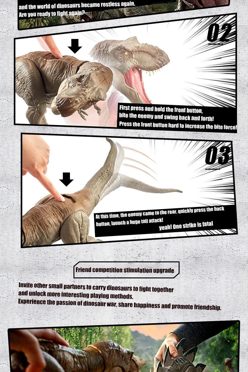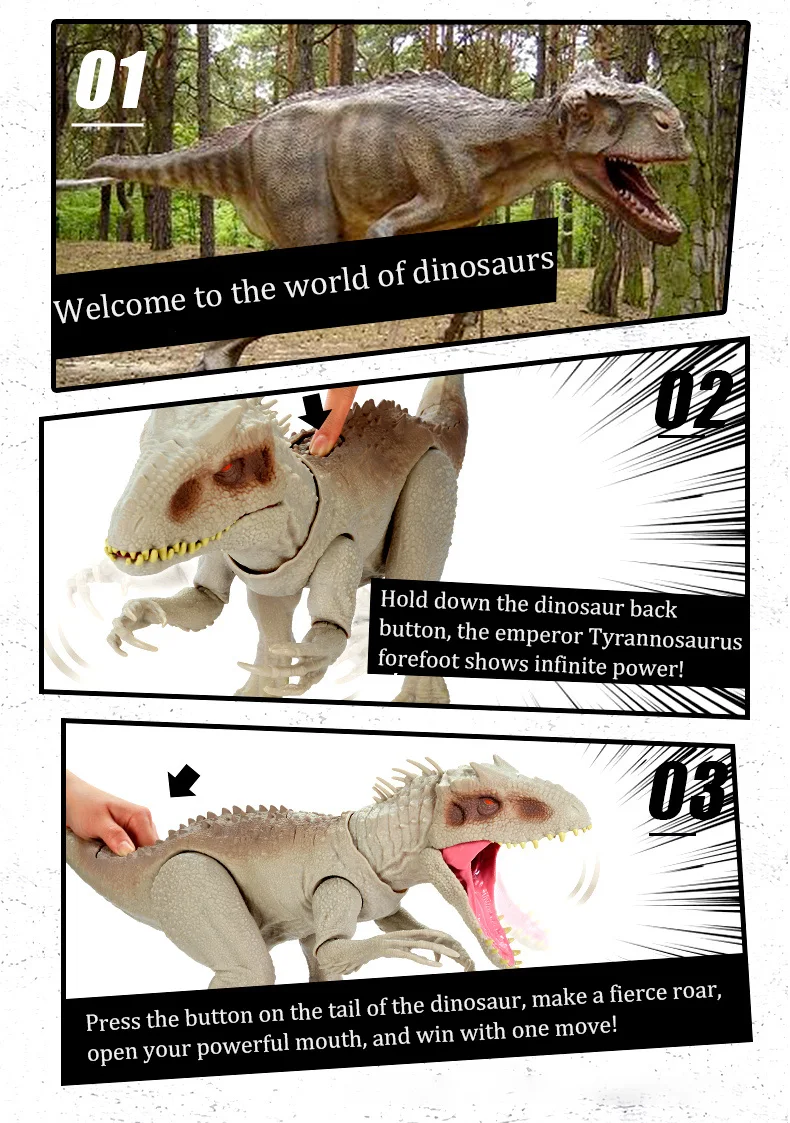 Добро пожаловать в Toy house. Магазин, мы отправим товар быстро после оплатыНазвание продукта: мир Юрского периода Тиранозавр РексПодходящий возраст: старше 2 летРазмер Sku1: 60,95*11,43*25,4 смРазмер Sku2: 53,33*17,15*21,37 смРазмер Sku3: 56*11*25 смОбслуживание: аккуратно протрите мягкой тканьюТовары включают: динозаврФункция: поверните хвост, чтобы управлять головой и телом, чтобы качать на 360 градусов, чтобы начать ожесточенную атаку. Нажмите кнопку на хвосте, чтобы открыть рот и сделать мощный звукЗвук и подвижный светильник, можно проглотить маленького динозавра до горлаБатарея: 3 кнопочные батареи (в соответствии с правилами логистики, батареи не предоставляются. Пожалуйста, выньте аккумулятор, если вы не используете продукт в течение длительного времени)Примечание:1. Из-за разницы между различными мониторами изображение может не отражать фактический цвет изделия. Мы гарантируем, что модель реального изделия не отличается от представленной на фото.2. Возможны незначительные отклонения в размерах из-за различных измерений вручную.3. О качестве: будут соответствующие отделы упаковки перед поставкой, не должно быть никаких проблем с качеством. Если продукт имеет свои собственные дефекты, пожалуйста, свяжитесь с нами в течение 48 часов после получения, и мы решим их для вас.