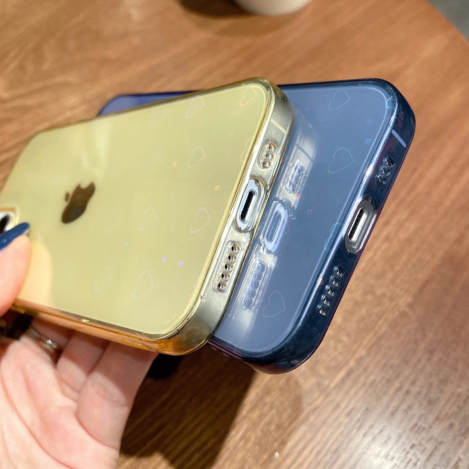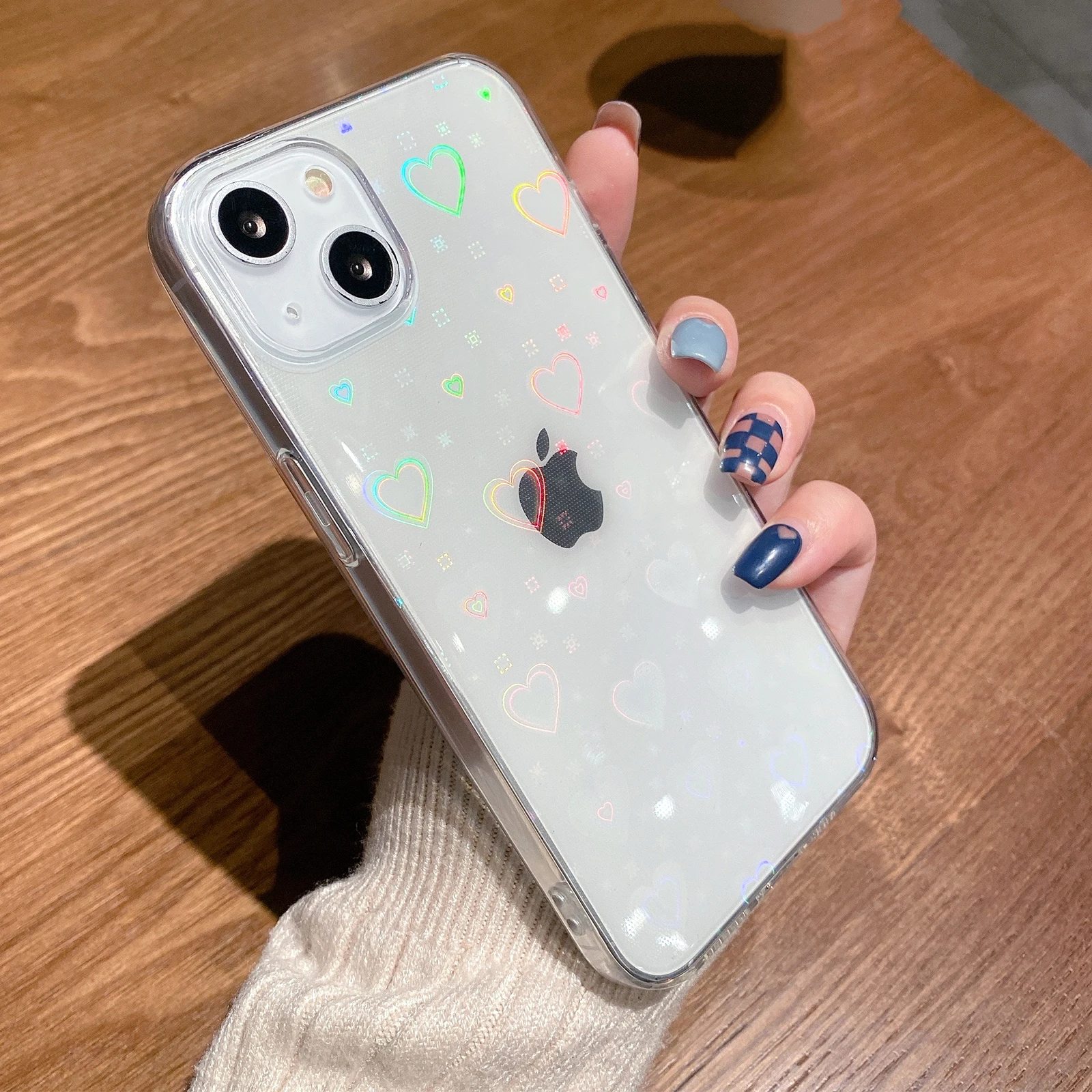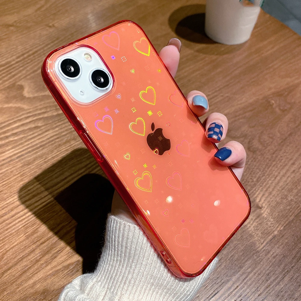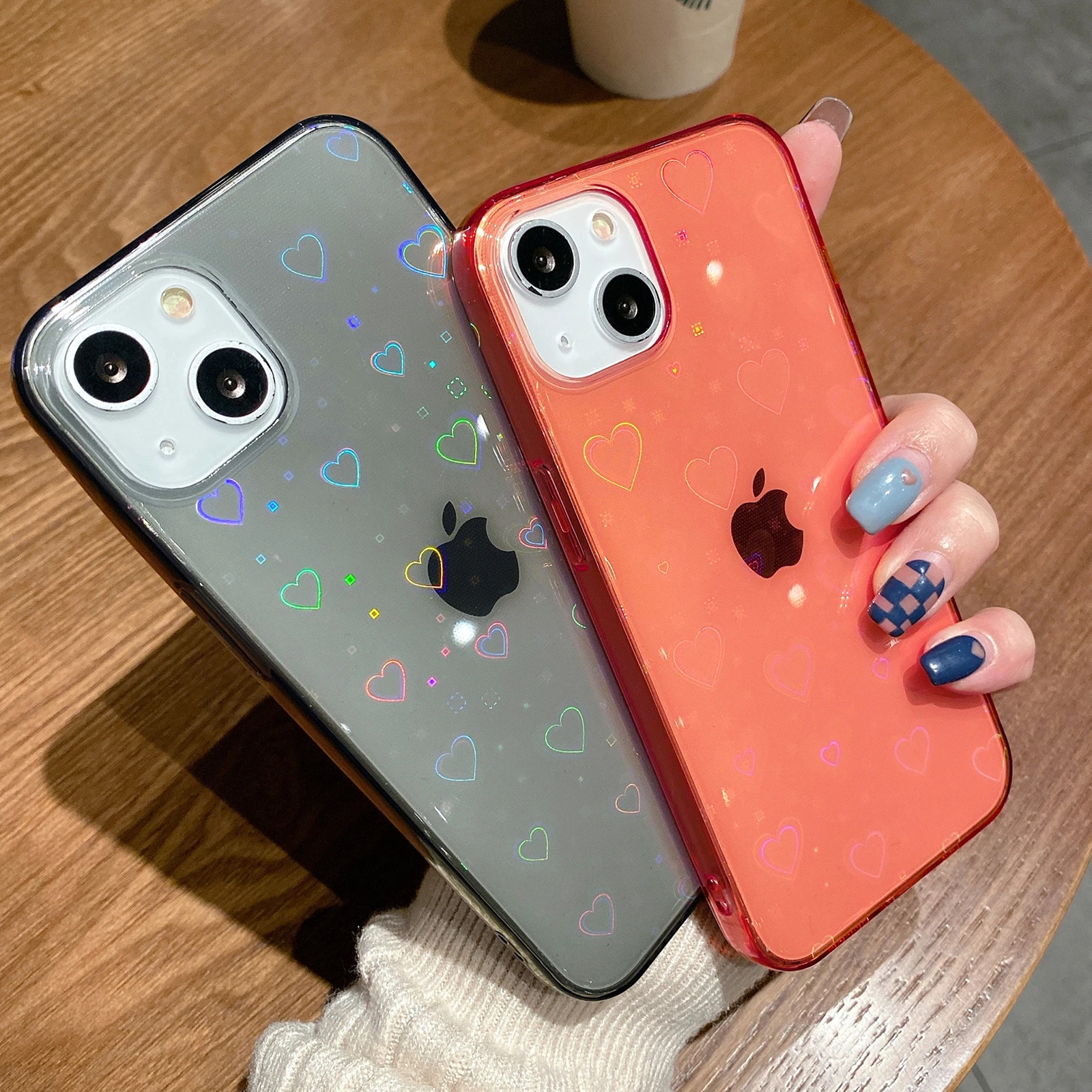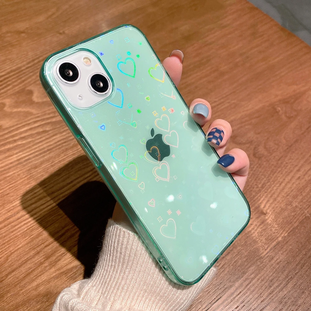 Голографический красочный лазерный Прозрачный чехол для телефона с сердцами для iPhone 13 11 12 Pro Max Mini X XS Max XR 7 8 Plus SE2020, мягкий чехол