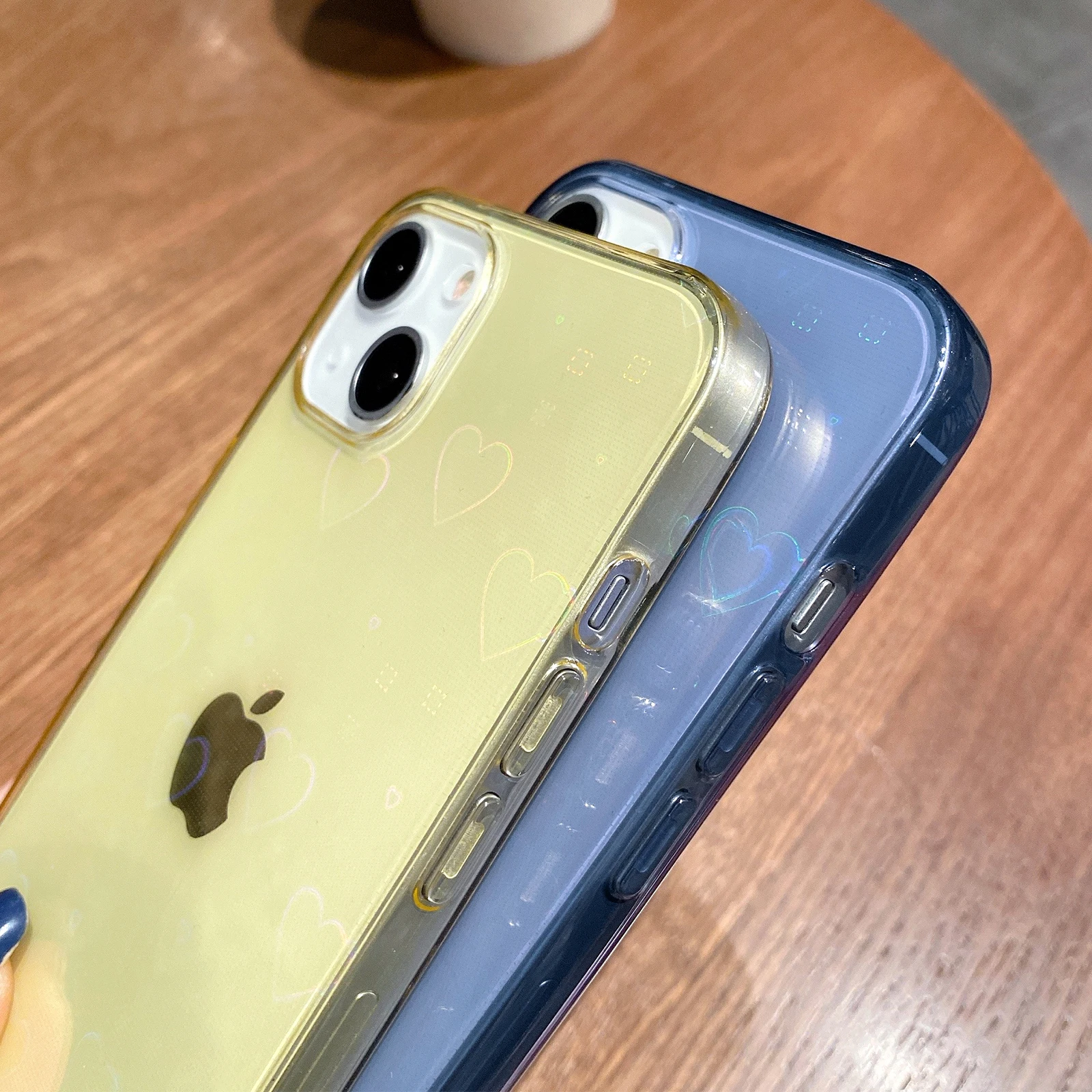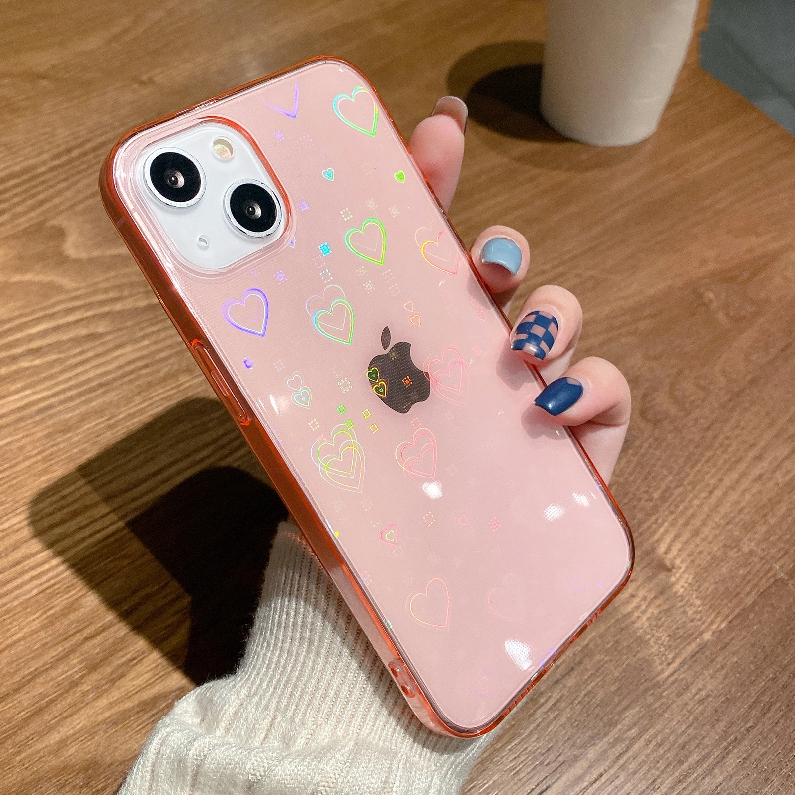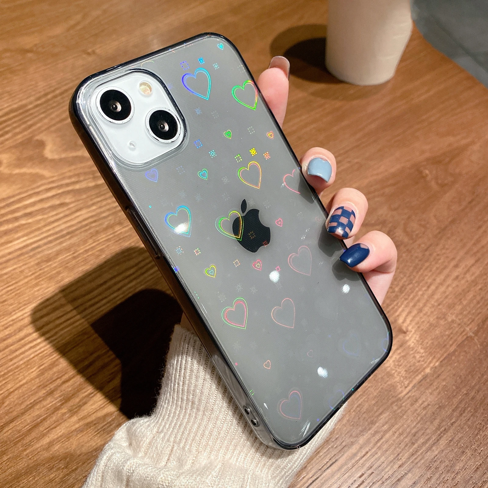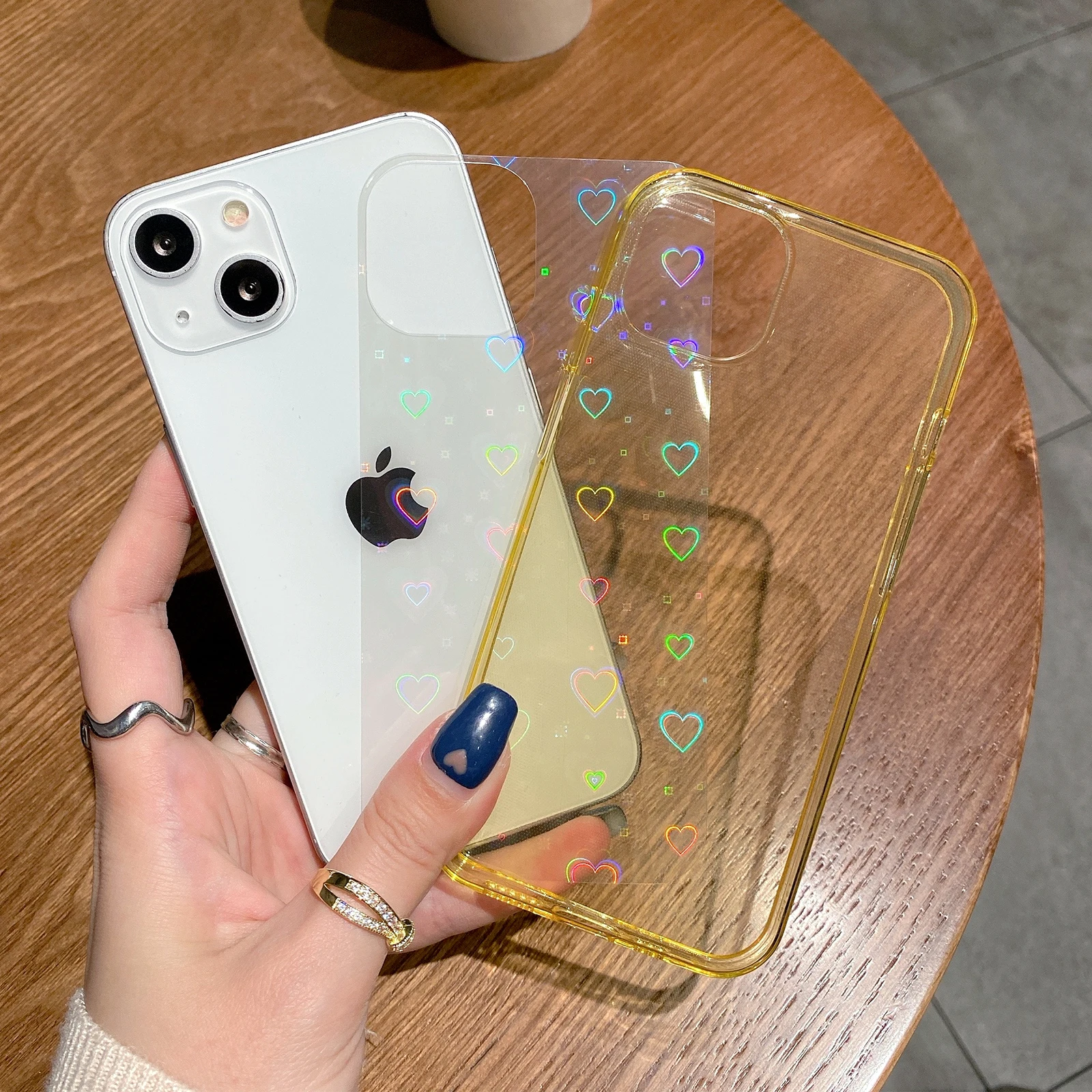 Голографический красочный лазерный Прозрачный чехол для телефона с сердцами для iPhone 13 11 12 Pro Max Mini X XS Max XR 7 8 Plus SE2020, мягкий чехол