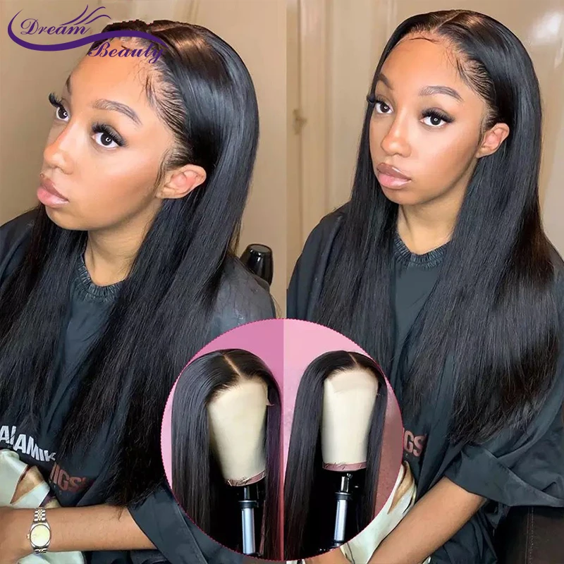 13x 4 парики из натуральных волос на фронте и шнурках 4x4 парик на застежке 12-30 дюймов бразильский прямой кружевной передний парик 180% Remy