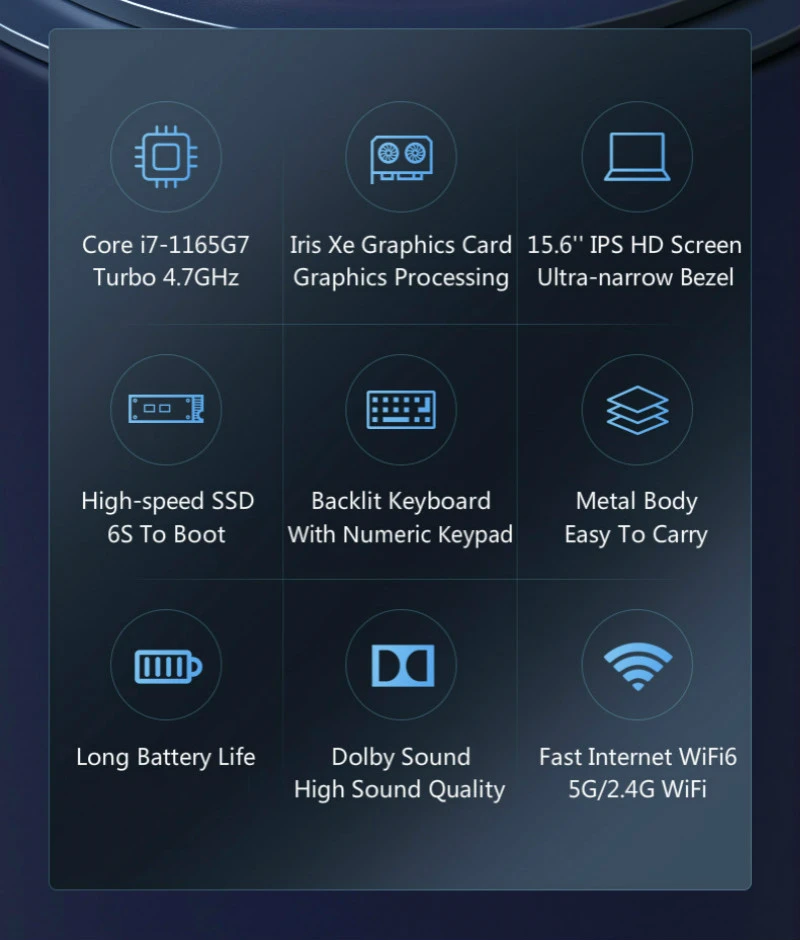 Ультрабук, игровой ноутбук 15,6 дюйма, Intel Core i7 1165G7, ноутбук с отпечатком пальца, Windows 11 10 WiFi BT