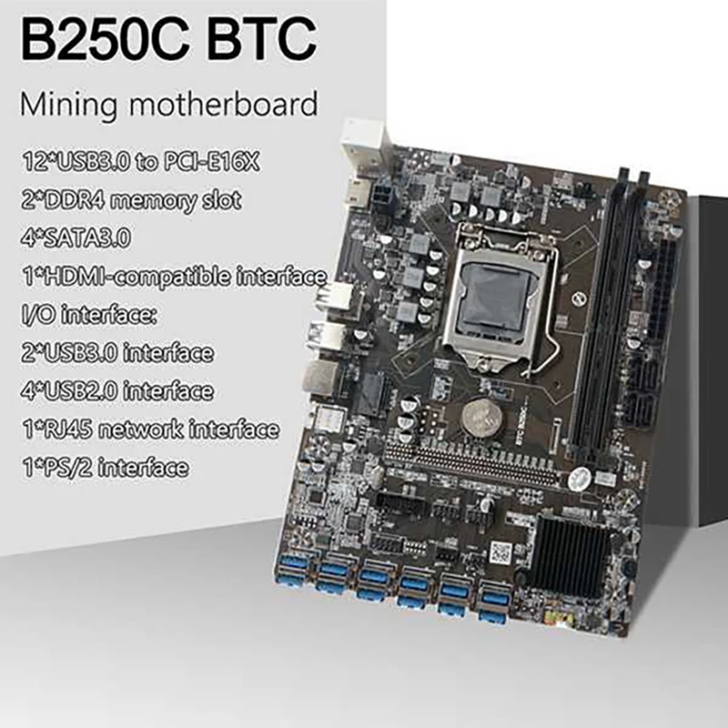 Материнская плата для майнинга B250C BTC с охлаждающим вентилятором + термопаста 12 PCIE в разъем для графической карты USB3.0 LGA1151 DDR4 DIMM RAM