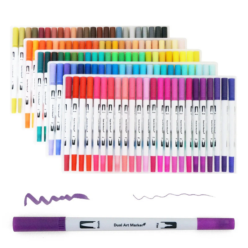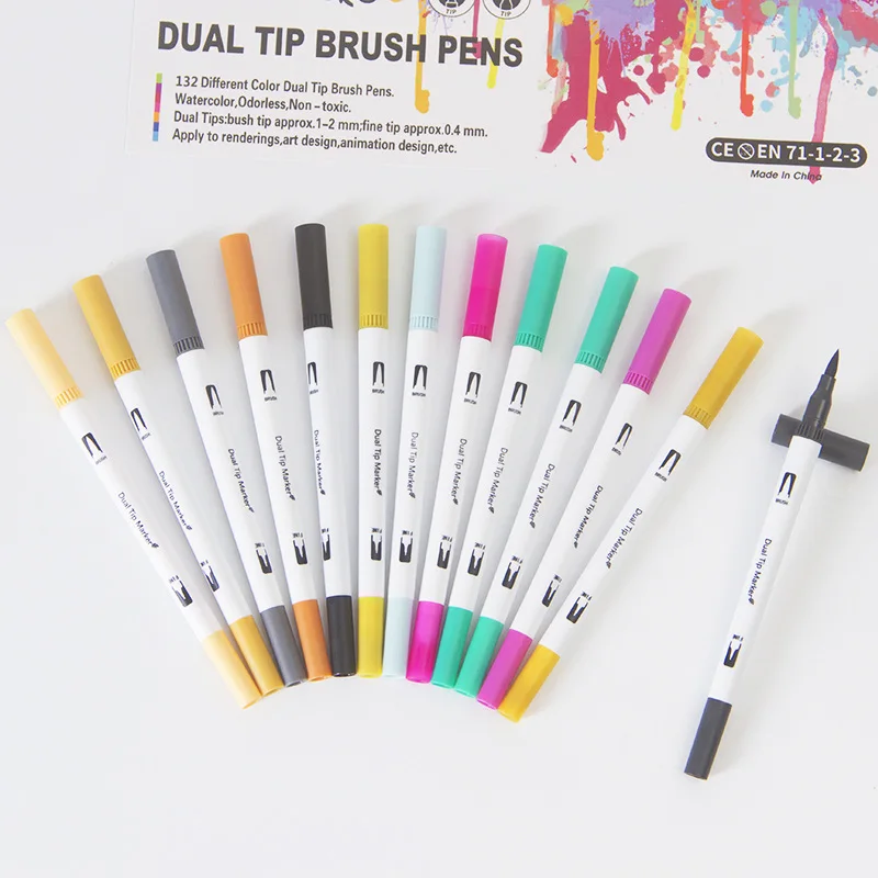 1. Двухсторонние ручки кисти: тонкий наконечник и наконечник кисти в 132 уникальных цветах-без дубликатов-полный спектр, необходимый инструмент для всех художников!.