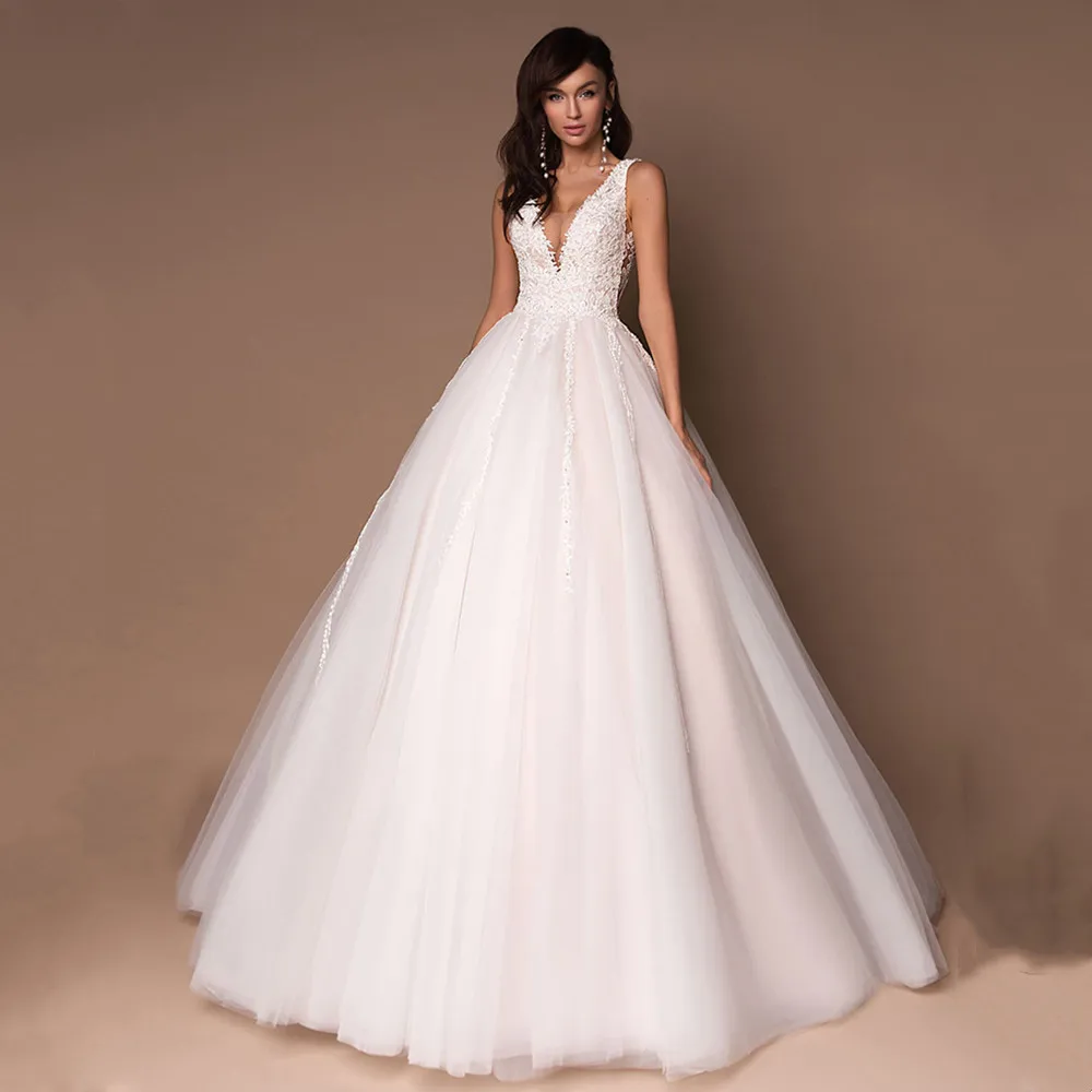 Женское свадебное платье, с V-образным вырезом и открытой спиной
